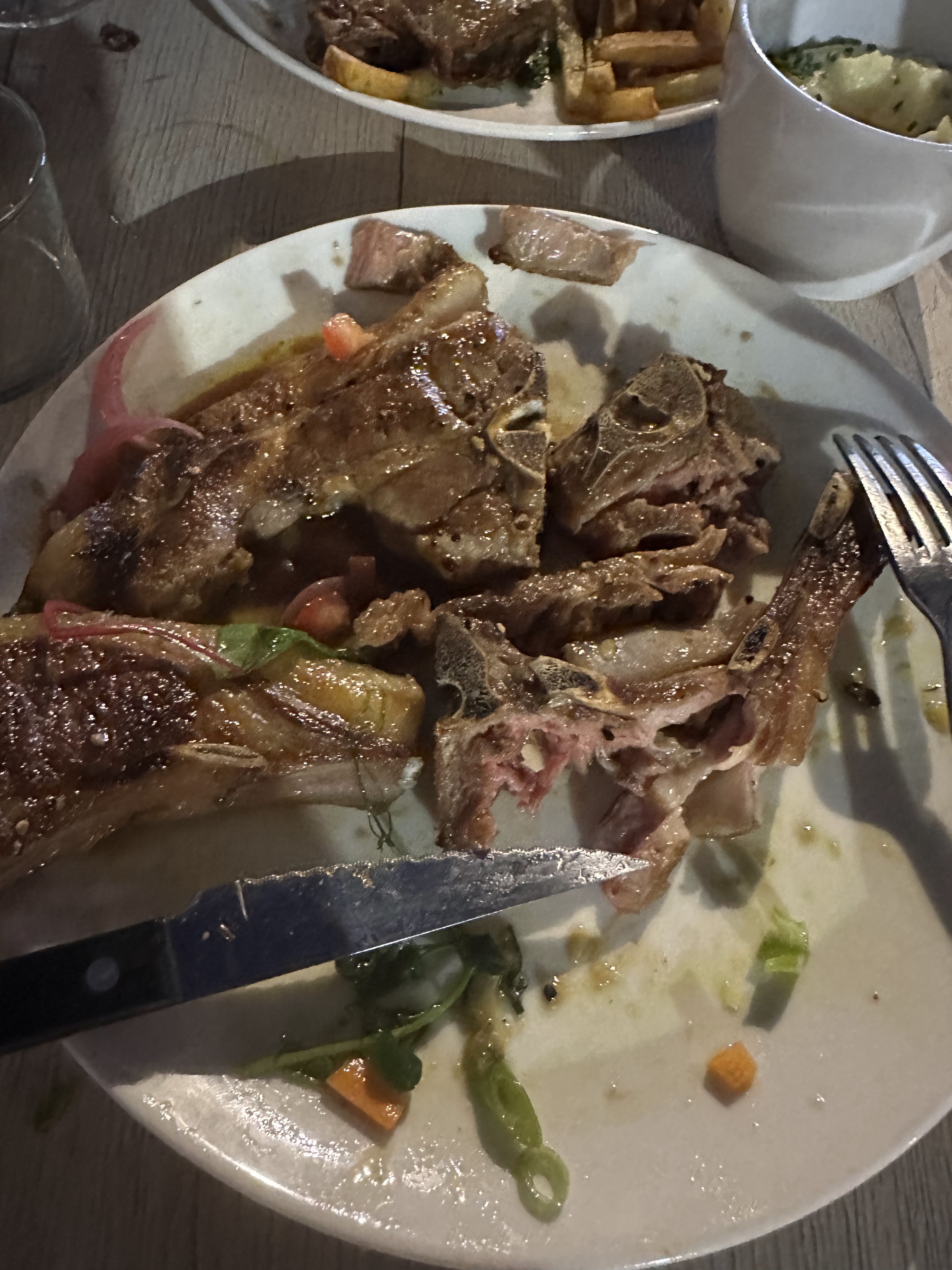 Nous avons sélectionné ce restaurant spécifiquement en raison des deux dernières critiques et de la note sur Google. Nous avons constaté que rien de tout cela n’est vrai. Le goût et la qualité sont inférieurs à la moyenne. L'agneau avait bon goût, mais il n'y avait que des os et de la graisse ! Le canard était sec et les frites étaient détrempées et sans goût ! La petite portion de légumes était ok. Ce qui nous a le plus dérangé, c'est que la cuisine n'était pas occupée et que les cuisiniers prenaient des pauses cigarettes juste devant notre table… la serveuse aussi. Quelque chose que je n'ai jamais vu dans aucun restaurant auparavant. Ce fut une perte de notre soirée et je vous recommande d'éviter ce joint. Ceci dit, le vin était bon et il a été recommandé par le gérant ou le propriétaire.