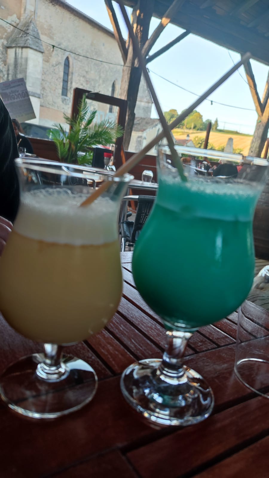grande terrasse dans une superbe halle pour un petit village...sympa en temps de covid !