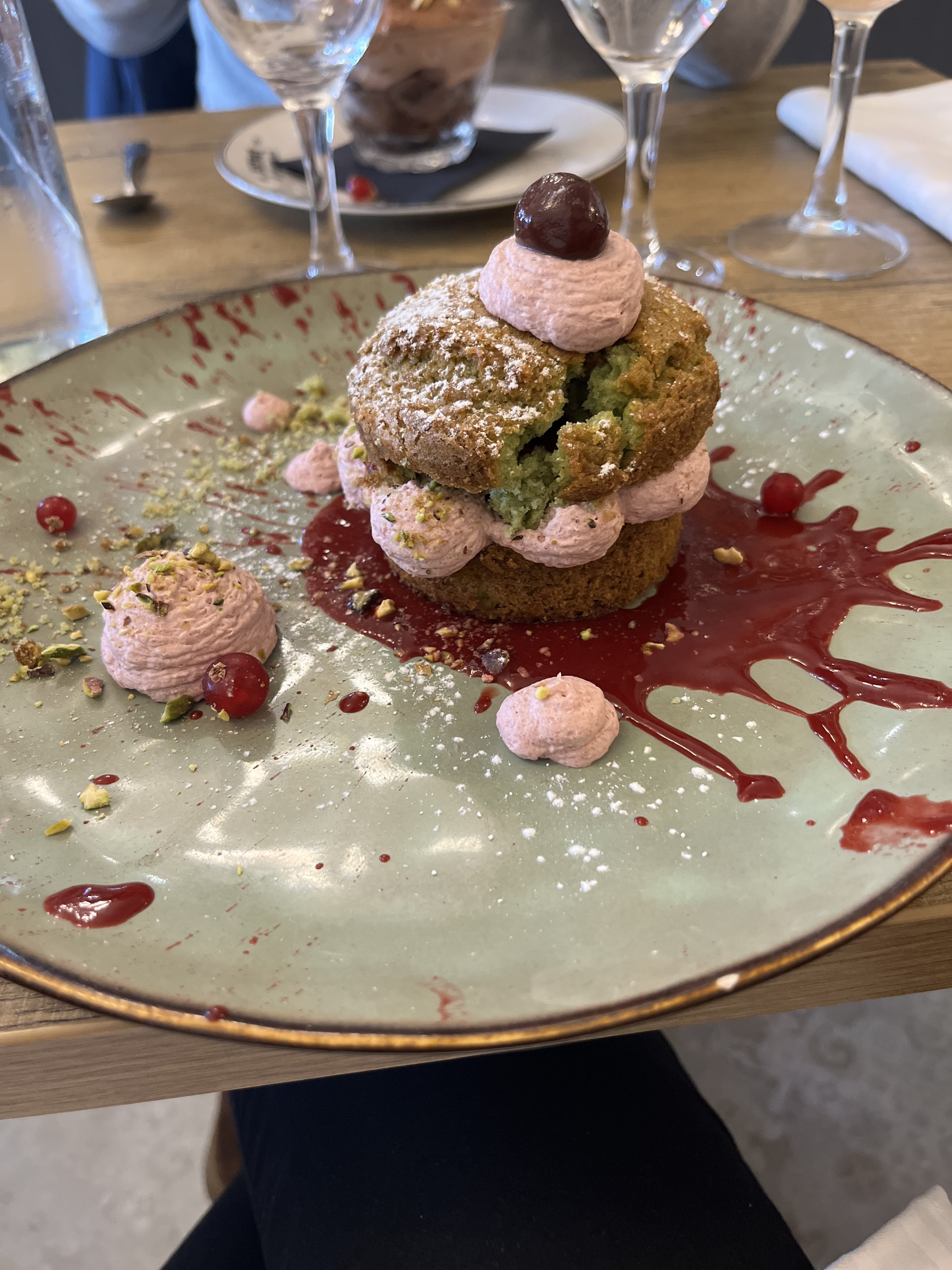 Nous avons passé plusieurs moments en charmante et agrèable compagnie. De bons conseils pour les vins,champagne et bières, plats en quantité suffisante et joliment dècorès. Jeux pour les enfants