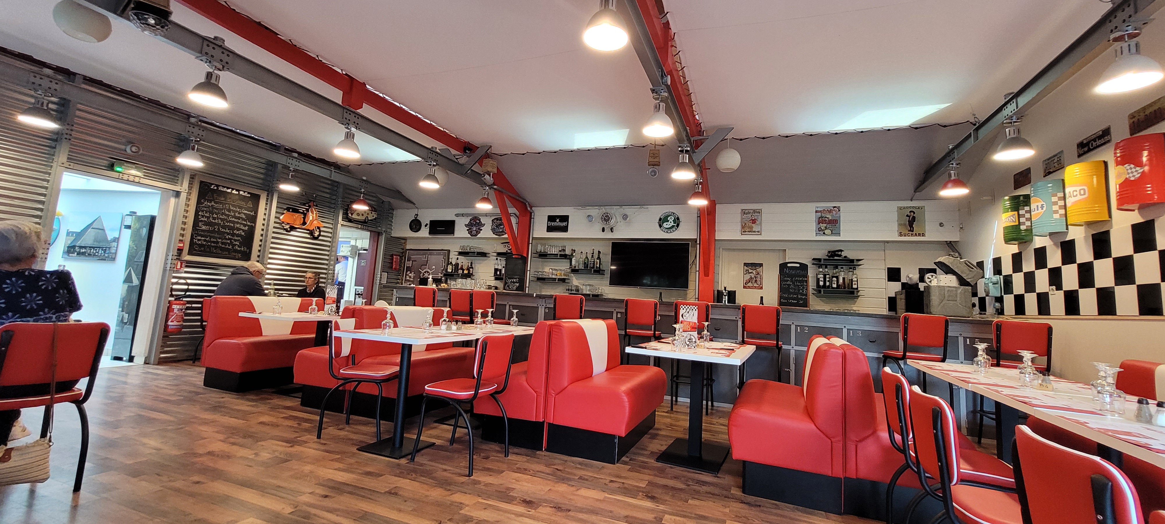 Très bon restaurant, très bons plats, jolie décoration avec banquette en cuir rouge à l'américaine avec plaques en métal au mur. Service rapide, fort agréable avec deux enfants en bas âge. Carte des plats un peu réduite