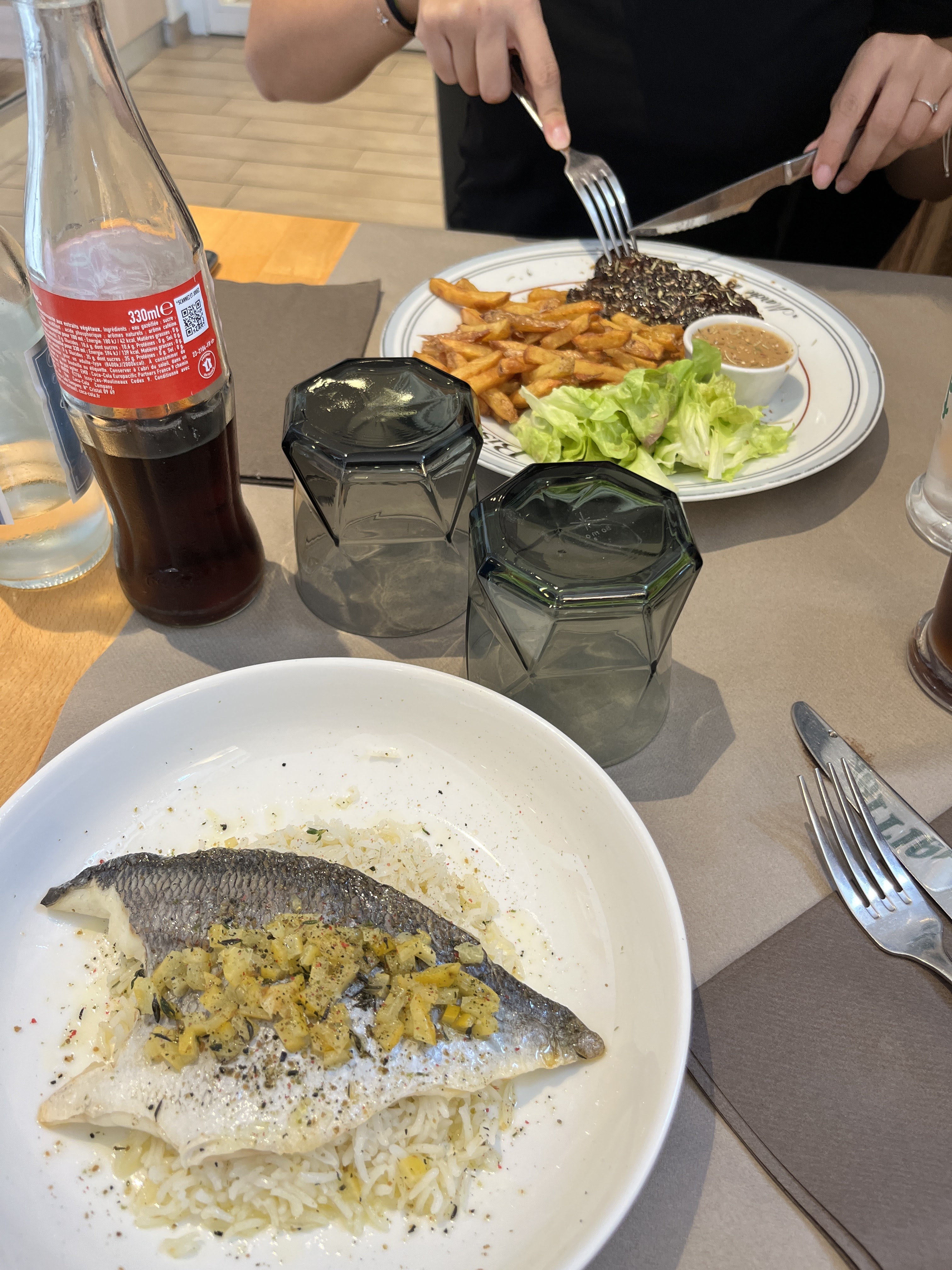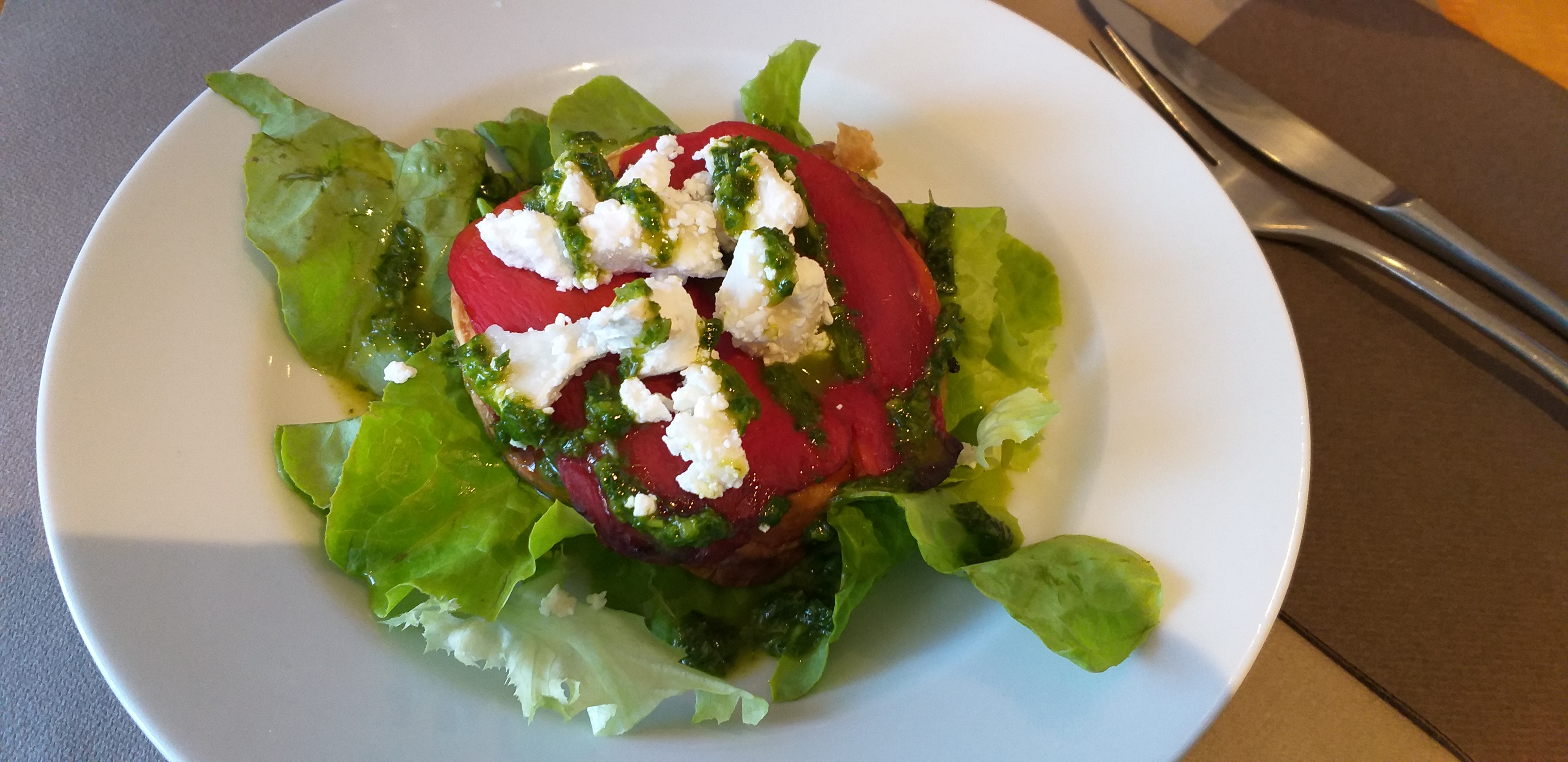 Bonne cuisine, même si présentation un peu « simple ». Dommage que pour le menu enfant soit prévue une « pièce du boucher » un peu compliqué pour un enfant.