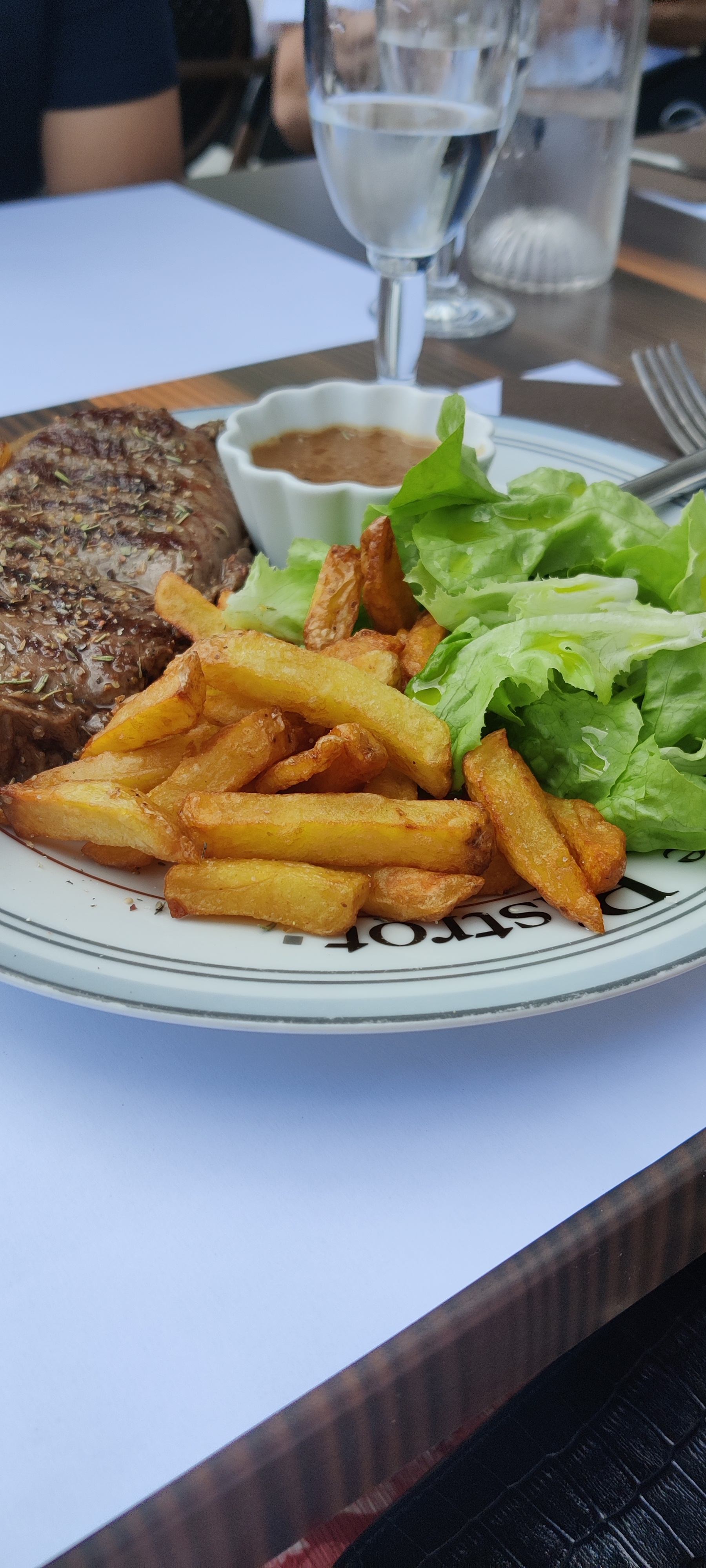 Très bon accueil. Gamelle d'eau pour le chien sans rien demandé. Viande bien cuite et de qualité, frites divines
