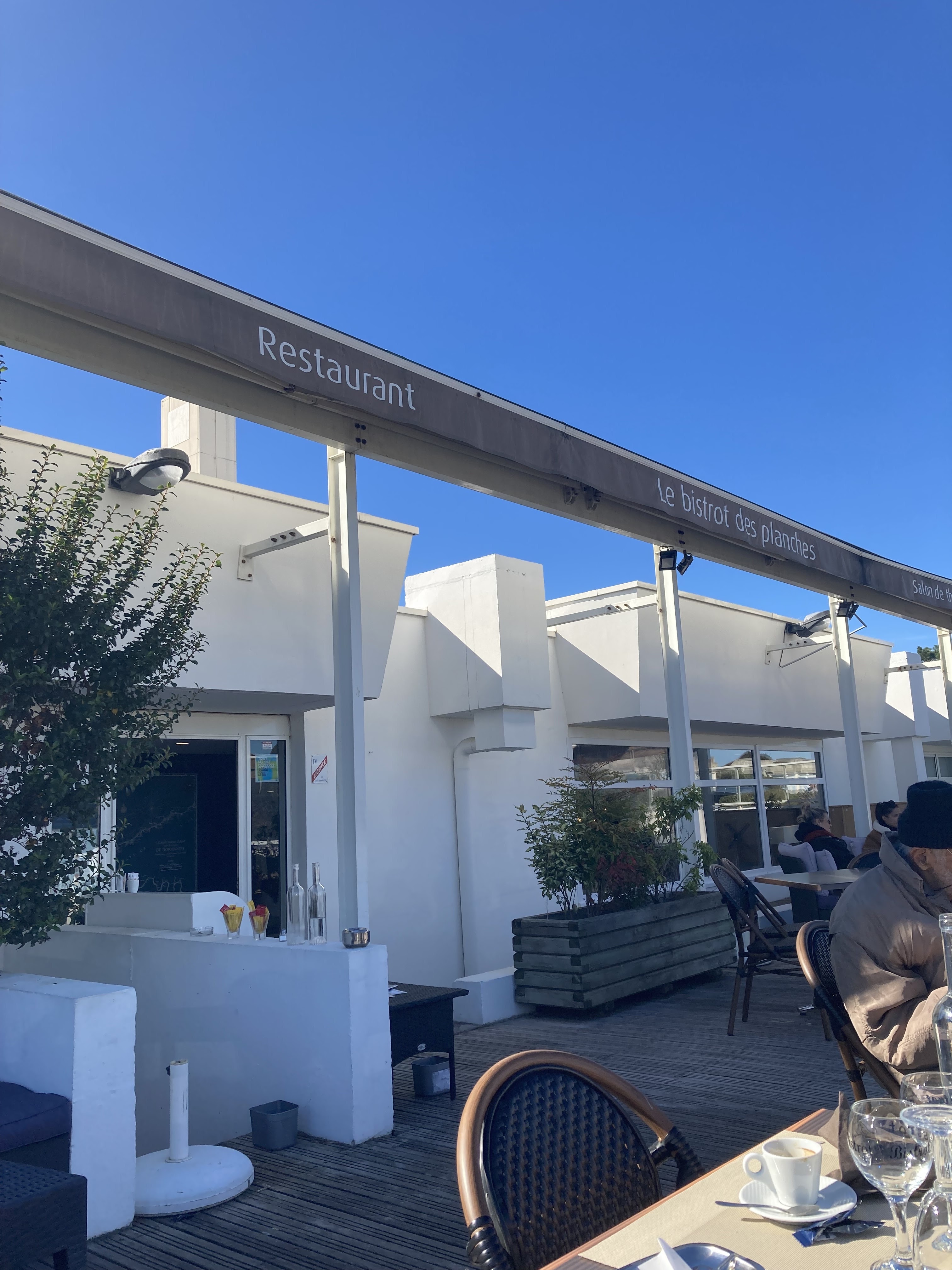 Nous nous sommes rendus au Bistrot des planches car le repas était compris avec notre matinée à la thalasso Algotherm. Nous avons été très agréablement surpris de la qualité des plats : les croquants de Pont-l'Évêque, le tatin d'oignons rouges ainsi que la pièce du boucher étaient très bien préparés. De plus, les prix sont accessibles pour un emplacement proche de la plage. Nous recommandons !
