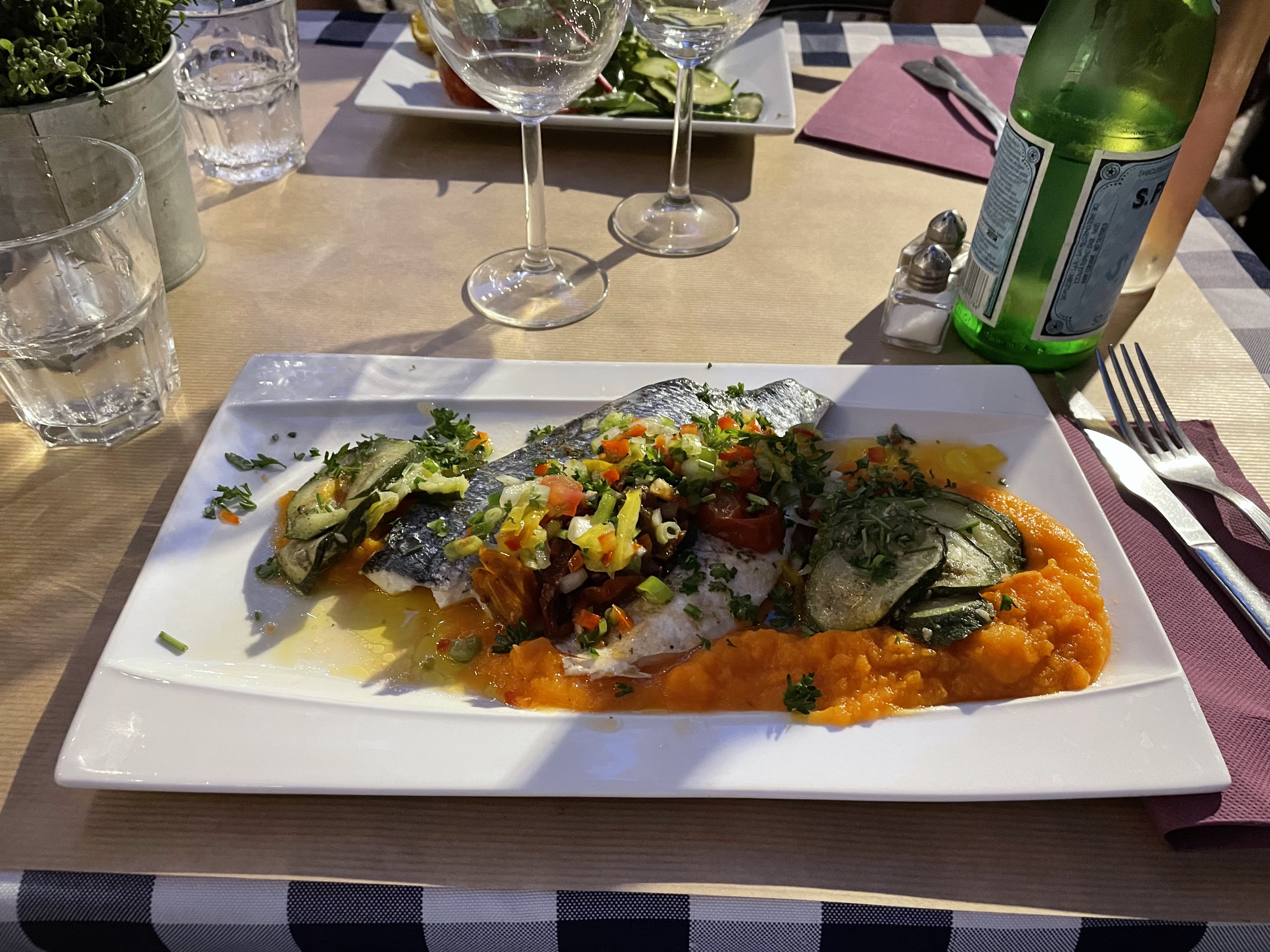 Repas fantastique pour deux adultes. J'ai eu la dorade et ma femme les lasagnes. Le personnel a aidé à choisir un vin qui accompagnait le poisson, et c'était un excellent accord.