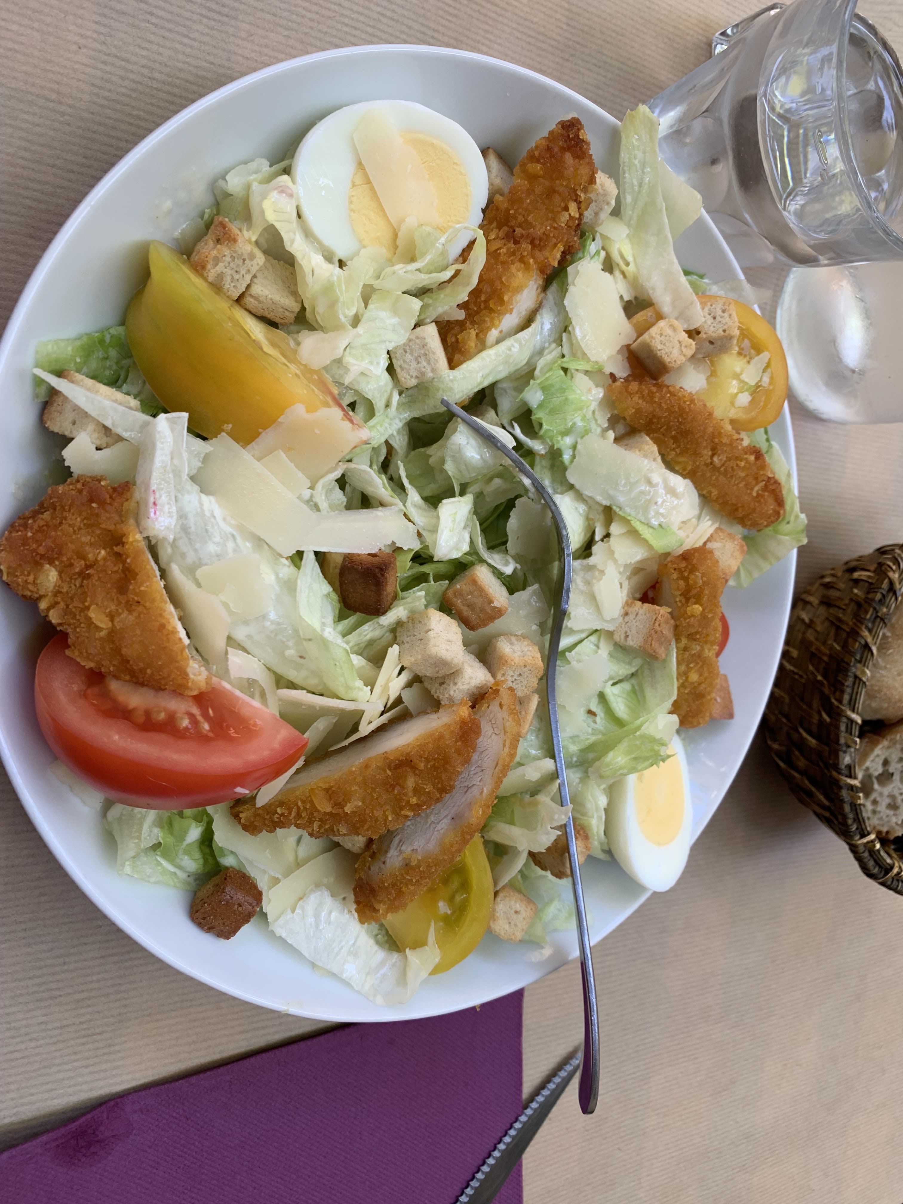 Cadre et service agréables, mais une salade César qui semble tout droit sortie d’une boîte en carton de chez MacDo. Honteux!