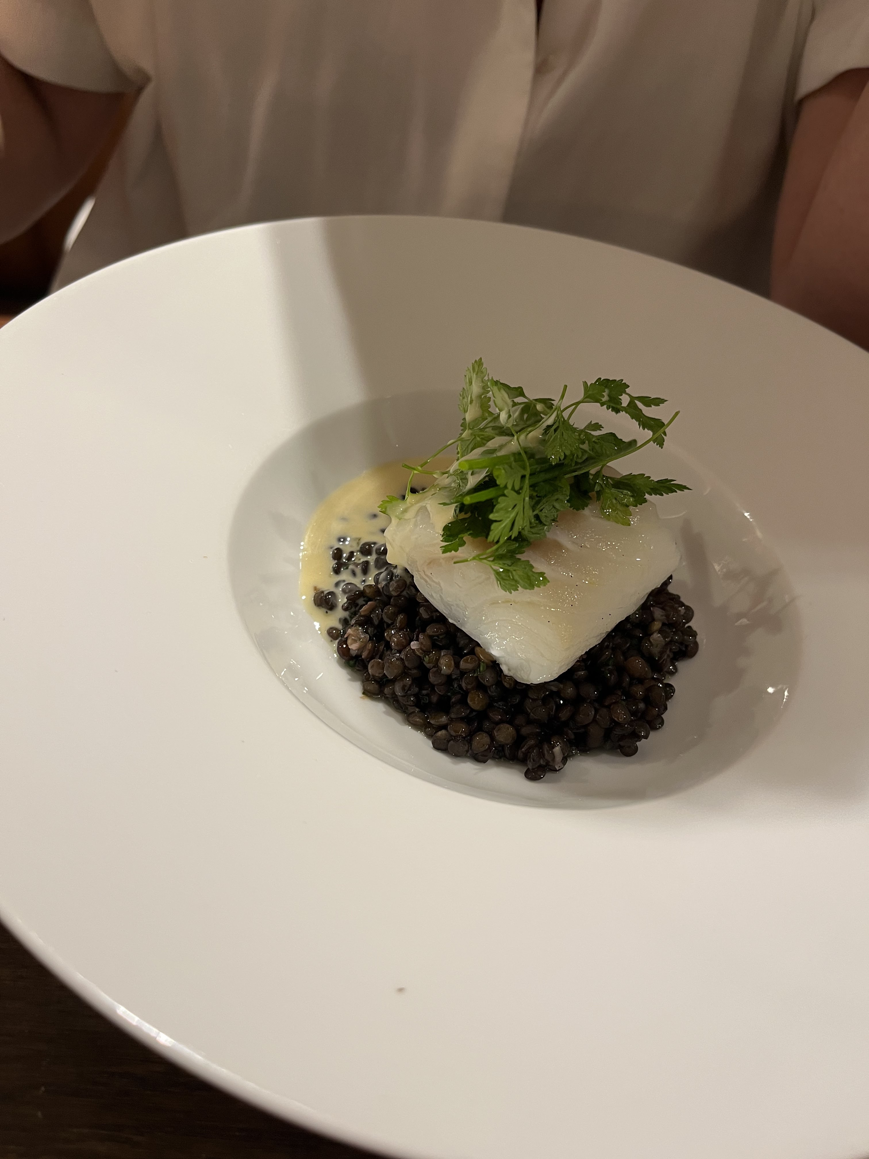 Pas grand chose dans l’assiette par rapport au prix (45€). Pas d’accompagnement réel avec le cabillaud à part l’émulsion ! Le dessert figue est trop sucré Déception