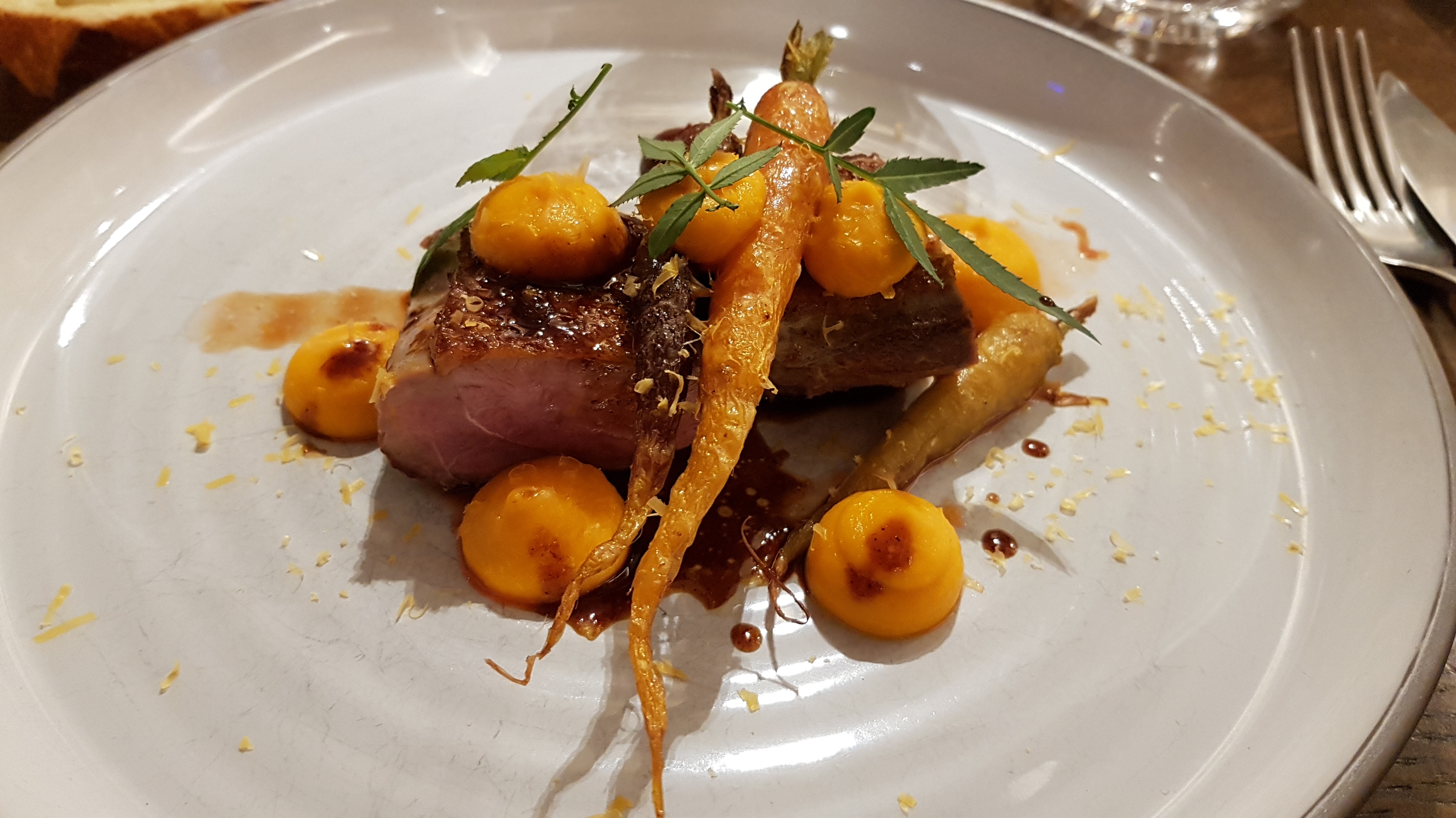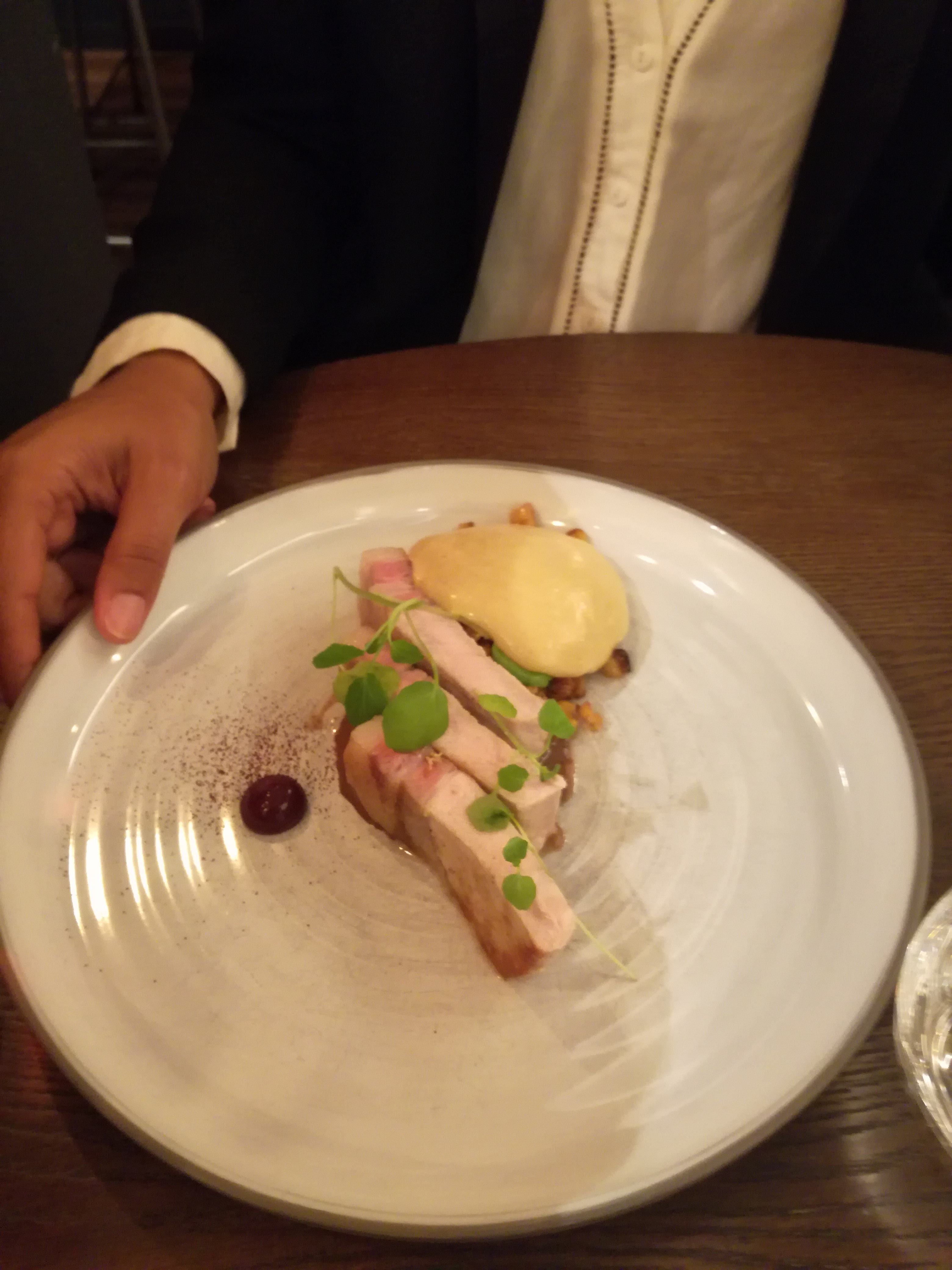 C'était plutôt bon mais déçu par les trés faibles quantités : 2 petits morceaux de canette qui se battent en duel dans la grande assiette et peu d'accompagnement, idem pour le dessert à base de chèvre et on est obligé de demander le pain tartine par tartine. Le tout pour 38 E hors conso. Je suis sorti du resto, j'avais encore faim, le comble 😂