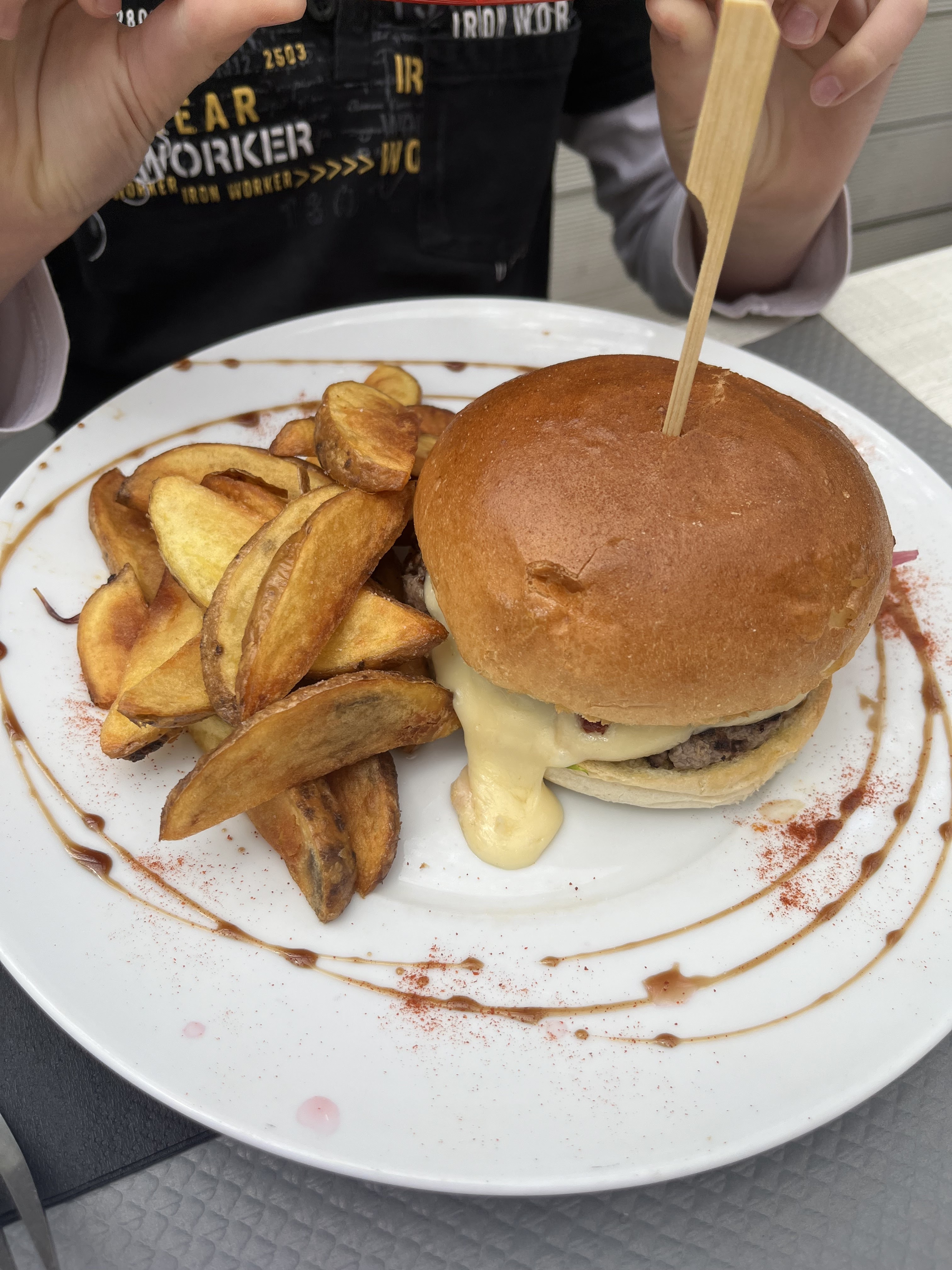 Plat du jour très appréciable, Burger maison chèvre miel oignons, frite maison et salade légère en agrément, manque peut être d’un peu de quantité. Prix raisonnable et cadre en terrasse sympathique !