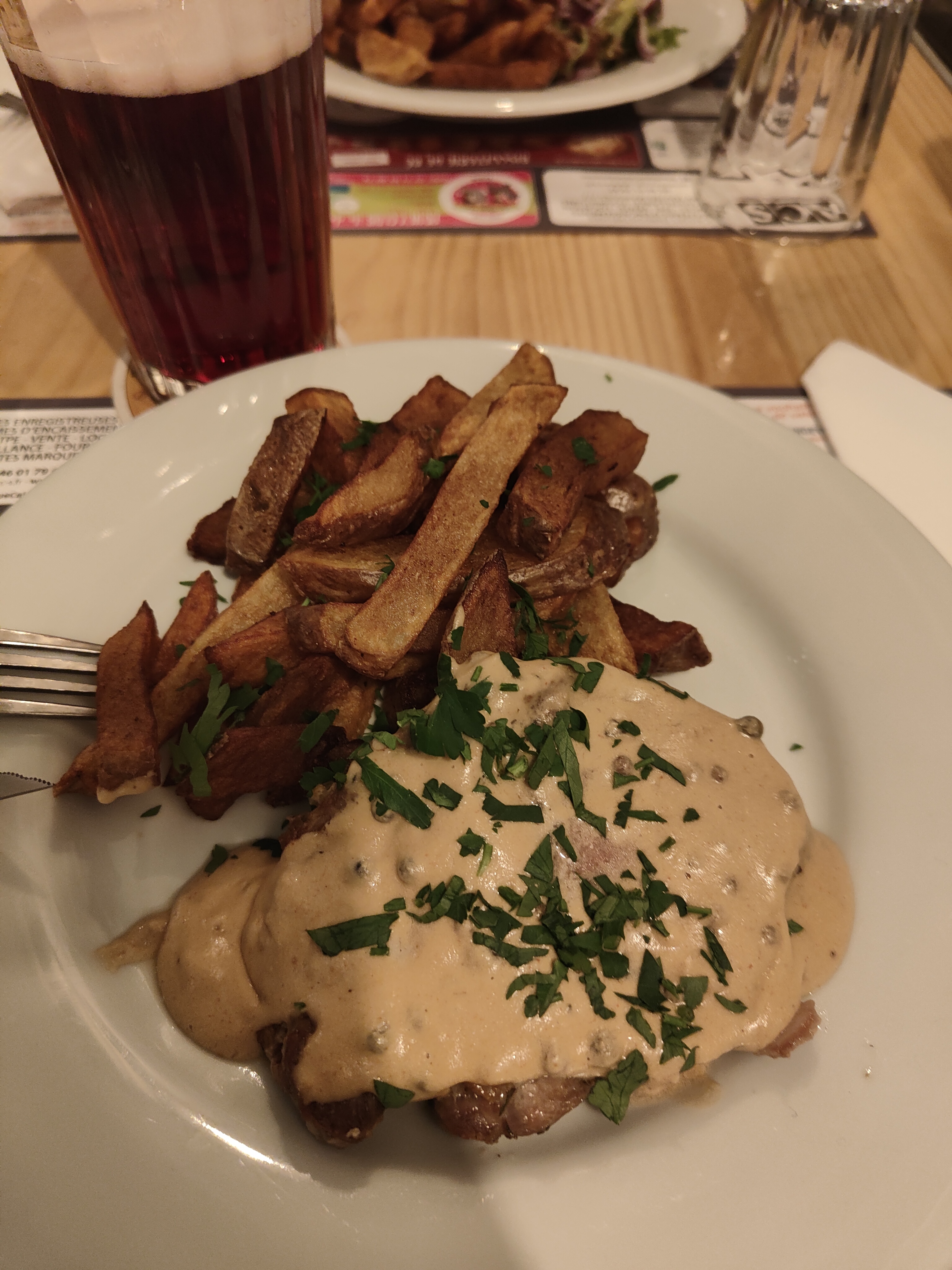 Je recommanderai l'assiette de poisson pour commencer et le steak frites. Bonne nourriture.