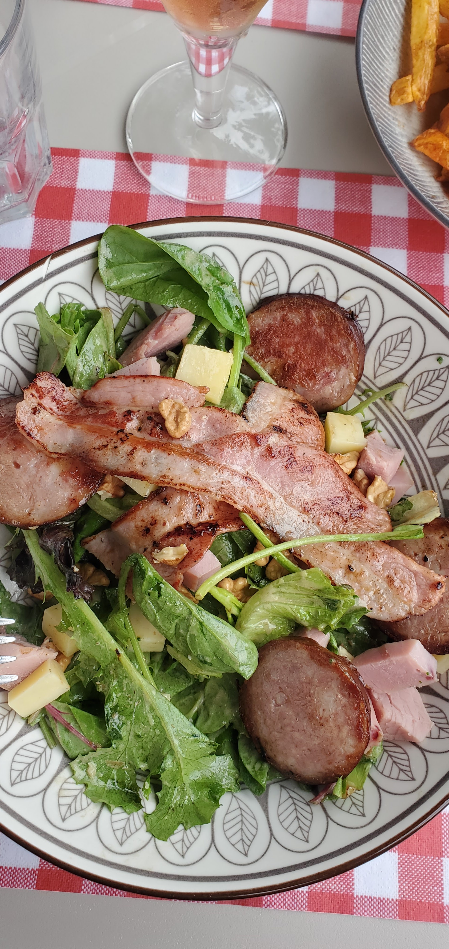 Désolé on est passé hier. on a prix deux salades franc-contoise. On n'a rien compris. Elle est proposée en entrée a 9 euros et en plat chaud 17 euro. Cela ne justifie pas le prix de 17 euros. Il y a rien mangé dedans. 3 rondelles de morteau 3 lards fumées griller 5 morceaux de comté. 4 morceaux de noix deux bout de tomate . Et salade vraiment pas copieux. Pas de pain. Salade pas de fruit pas prix exposés.. Moi je trouve cela trop cher. 5 euros pontarlier. 8 euros le cuba libre. Autrement de l' ombre et le cadre sympa et propre bravo. Qu'elle difference de prix pour entre et plat ?