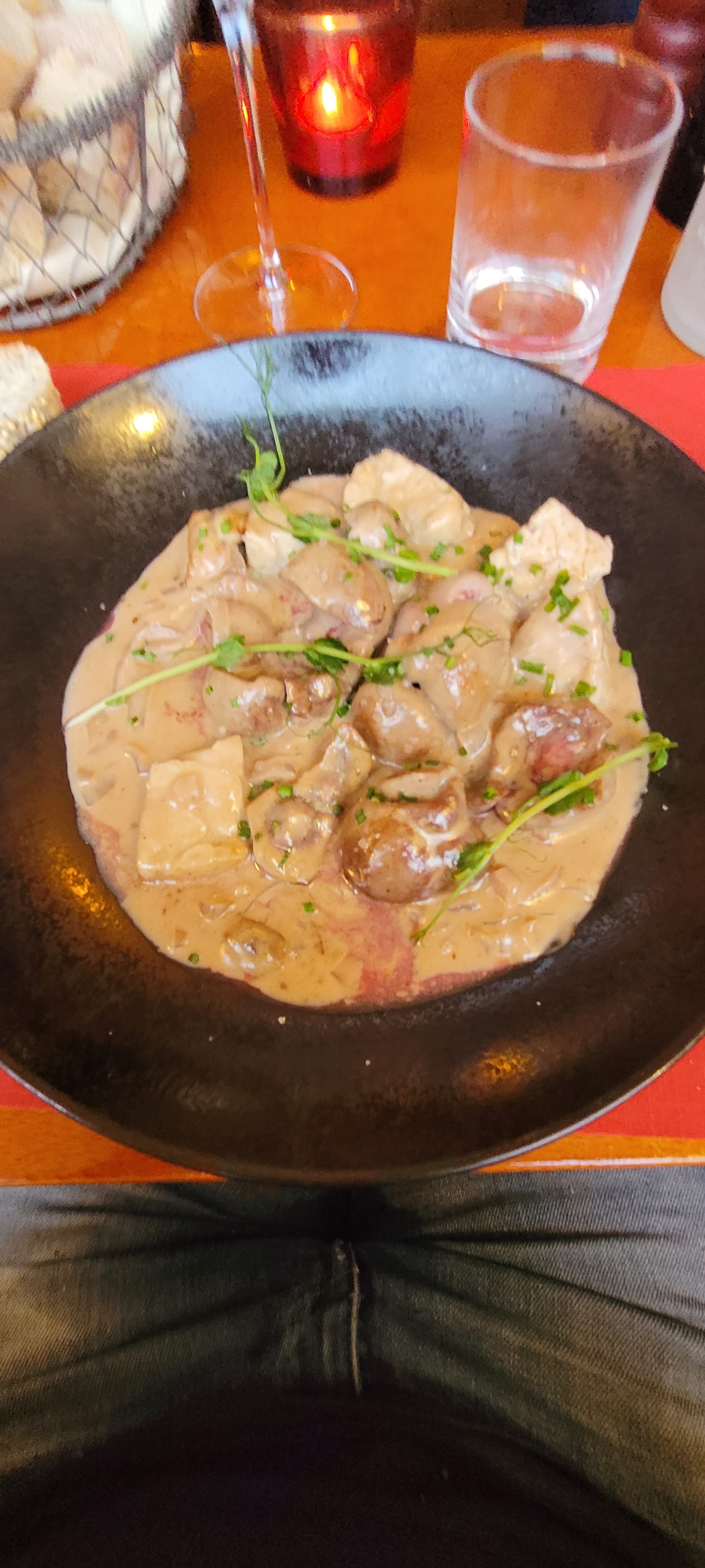 On a très bien mangé ! C'était très bon Et le mélange rognon-ris de veau était succulent Le dessert c'est juste de la gourmandise 😅