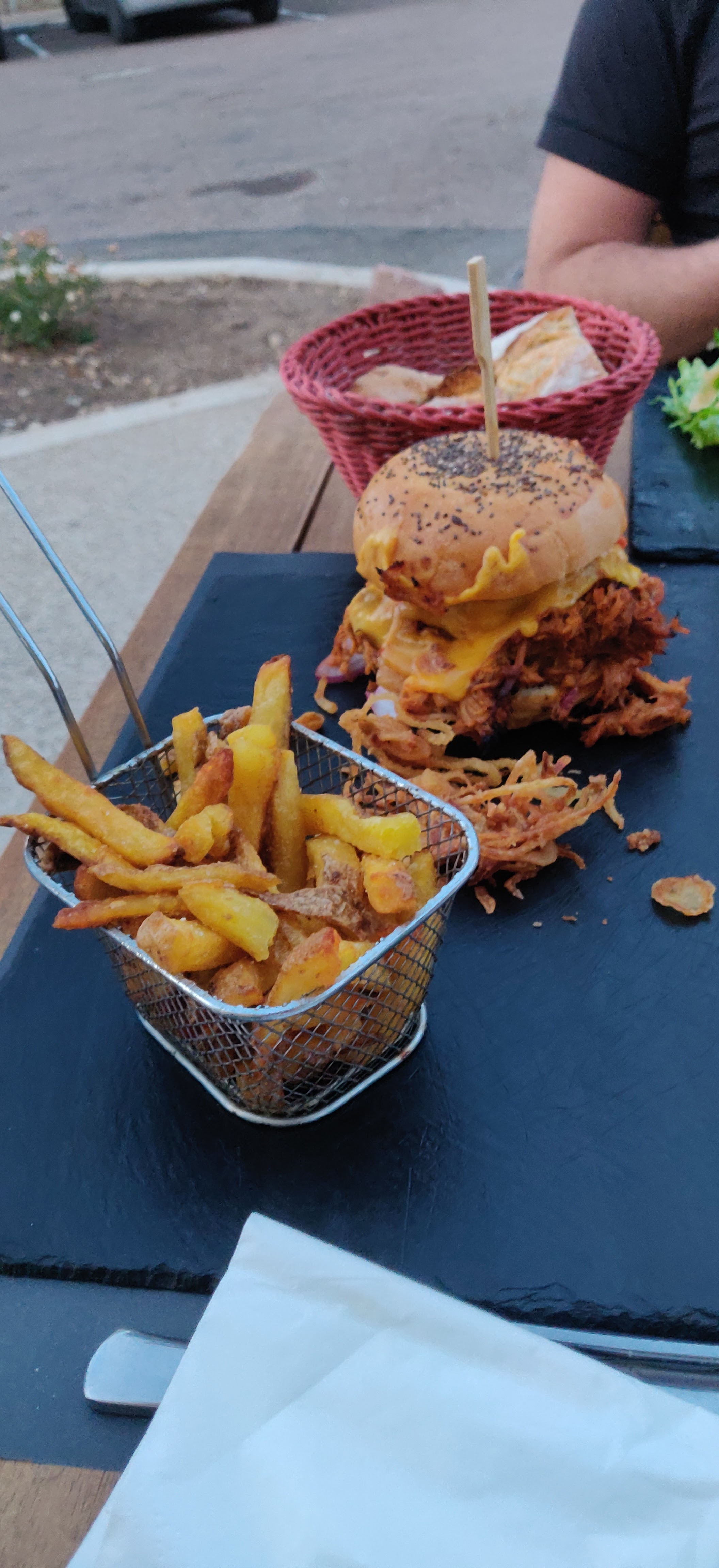 Le service est bien. Les frites maisons nous ont un peu déçu (pas bien cuites), le burger était bon, l'entrée assez moyenne. Nous avons trouvé les prix plutôt élevés, notamment pour les entrées et desserts.