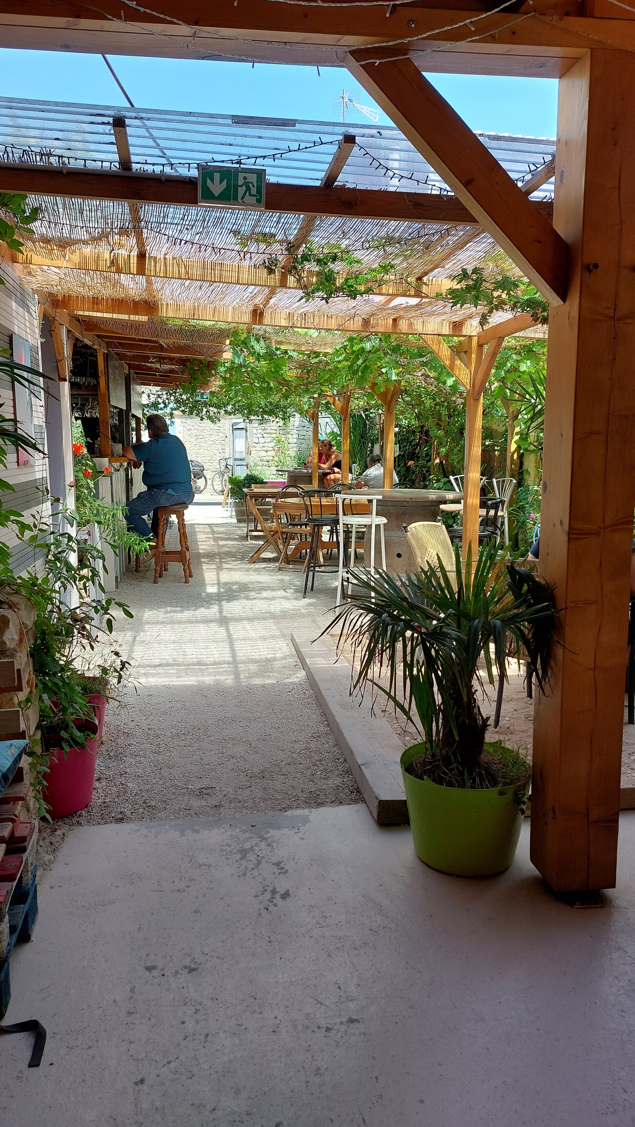 Bar atypique, un coin de verdure ombragé, sous sa tonnelle de vignes et de mûres. A découvrir absolument.