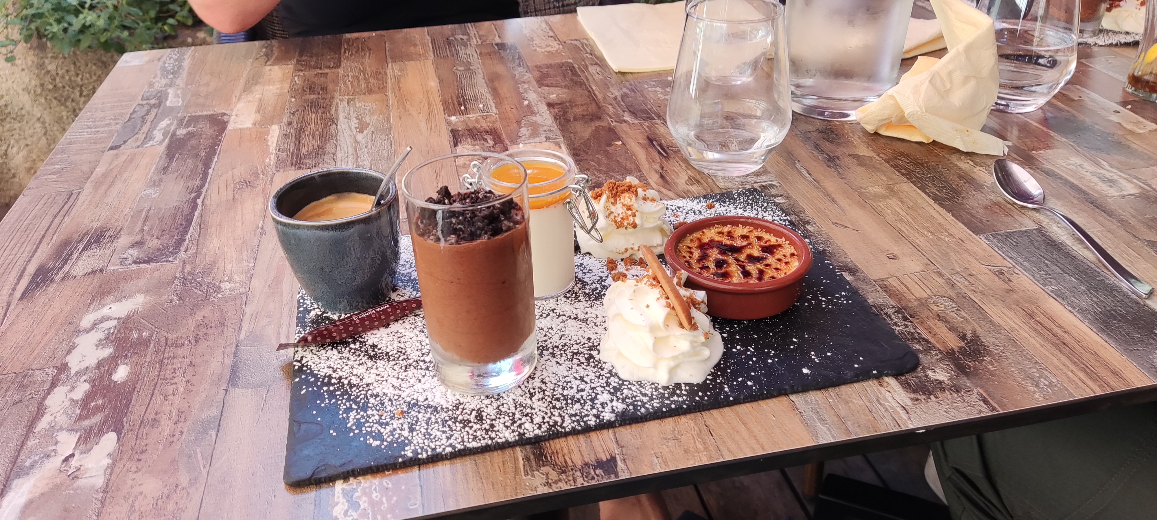 Nous avons apprécié de manger une très bonne glace sur la terrasse, en soirée. Espace calme et charmant, sur une place ombragée. Sympathique.