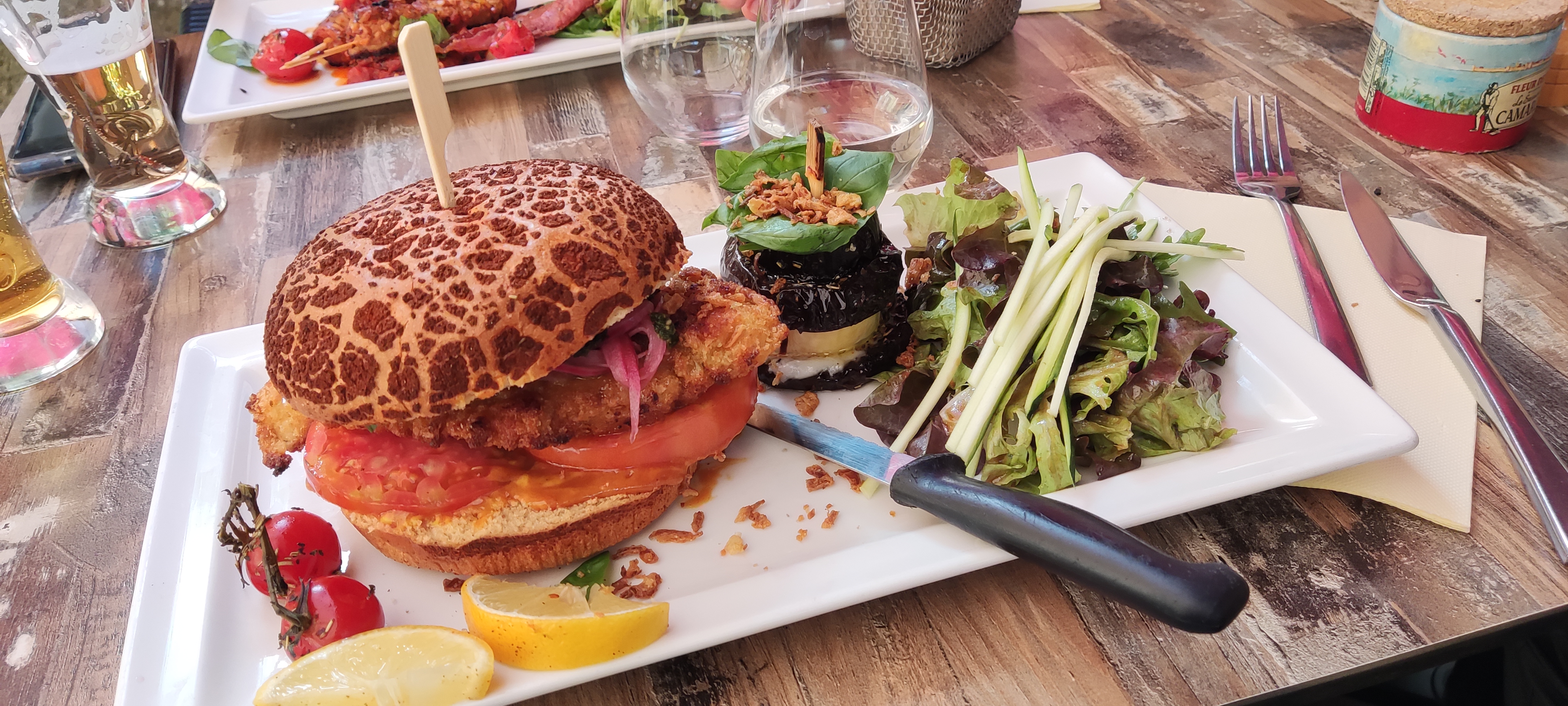 Tout commence par la carte, qui au premier regard vous donne une envie incroyable de tout manger. Ensuite viens l'accueil, rapide d'une qualité exemplaire et surtout on est accueilli avec le sourire. Nous sommes installés rapidement, le cadre est magnifique et le serveur nous apporte une excellente tapenade. Pour la commande je prend le burger du paysan. Le service est ni trop long, ni trop rapide. Une fois le burger devant moi, je contemple cette belle assiette qui commence à me faire voyager. J'entame ce sublime plat et une fois en bouche, j'en perd tout mes mots et je m'empresse de dévorer ce divin burger que je vous recommande. Les milles et une saveurs sont là et ........... wouahhhhhhhh...... trrrrooooopppppp bon. Bravo au chef. Nous finissons par un petit café puis nous payons la note qui reste plus que raisonnable. Nous reviendrons et nous recommandons ce restaurant. Si seulement je pouvais mettre plus de 5 étoiles je le ferais. Merci au serveur et au cuistot.