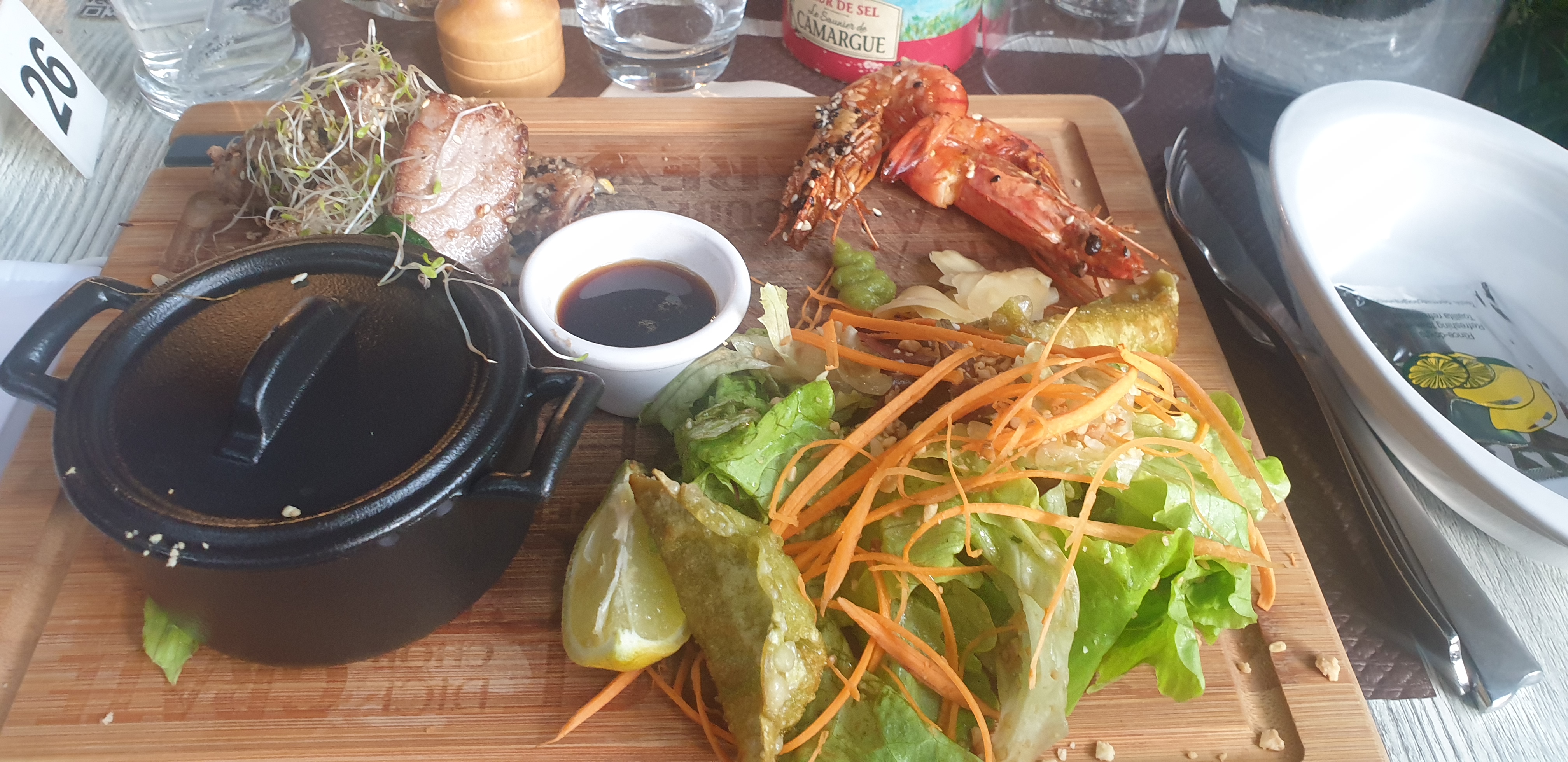 Personnel disponible, patient, souriant, et très agréable. Les gambas des pâtes thaï étaient très grosses, les assiettes bien garnies, le plat bien assaisonné et très bon. Nous avons également apprécié le petit jardin où nous avons pris le repas. Je recommande ce restaurant😉👌 Merci