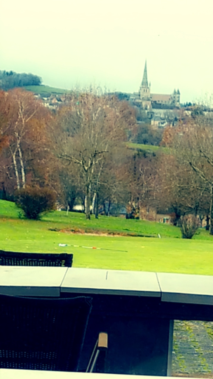 Nous étions en terrasse avec un magnifique point de vue sur les monts du Morvan et la ville d'Autun au premier plan