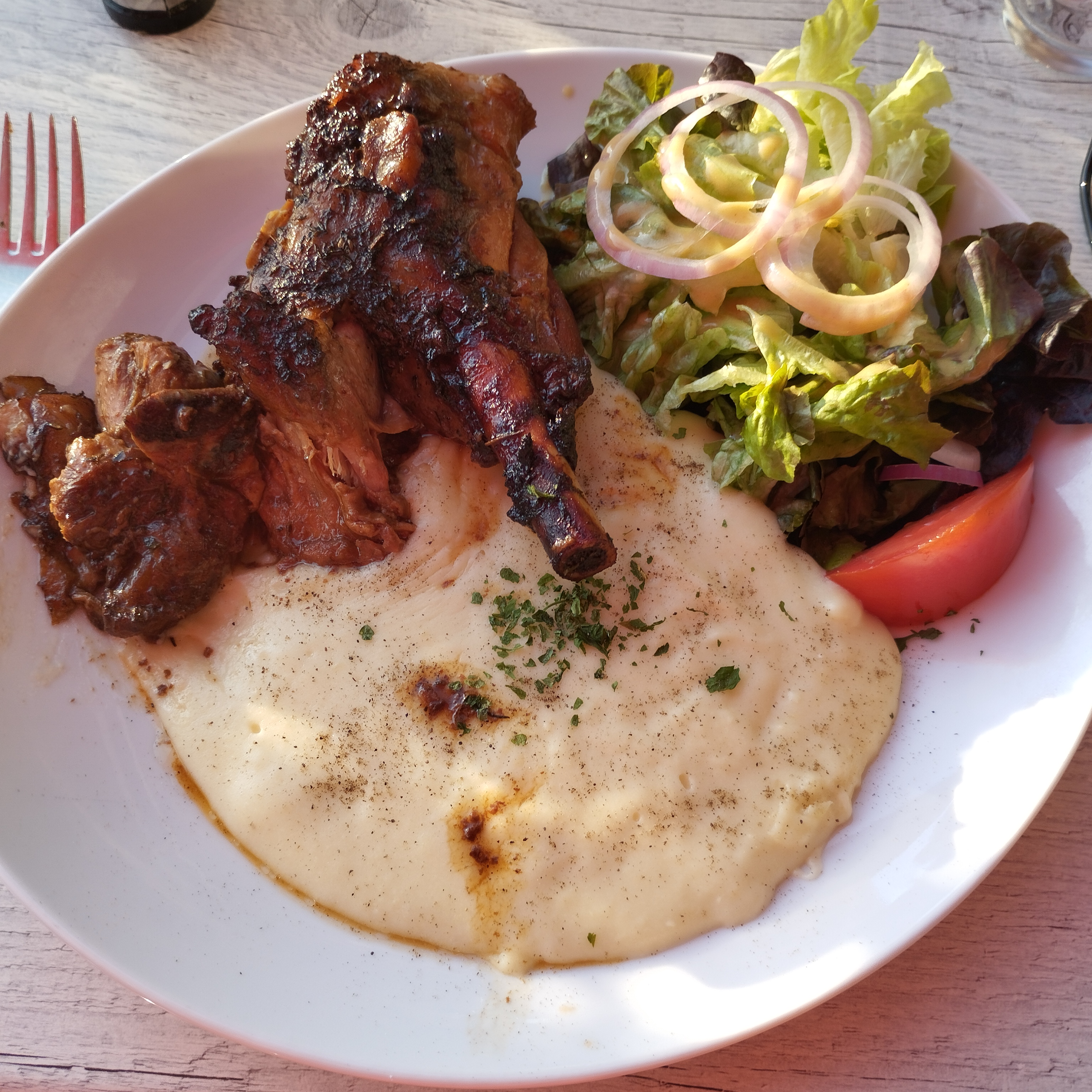 Arret et moment de détente sympa sur la continuité d'une balade autour du lac. Plat simple mais le goût y était La vue sur le lac est un plus.