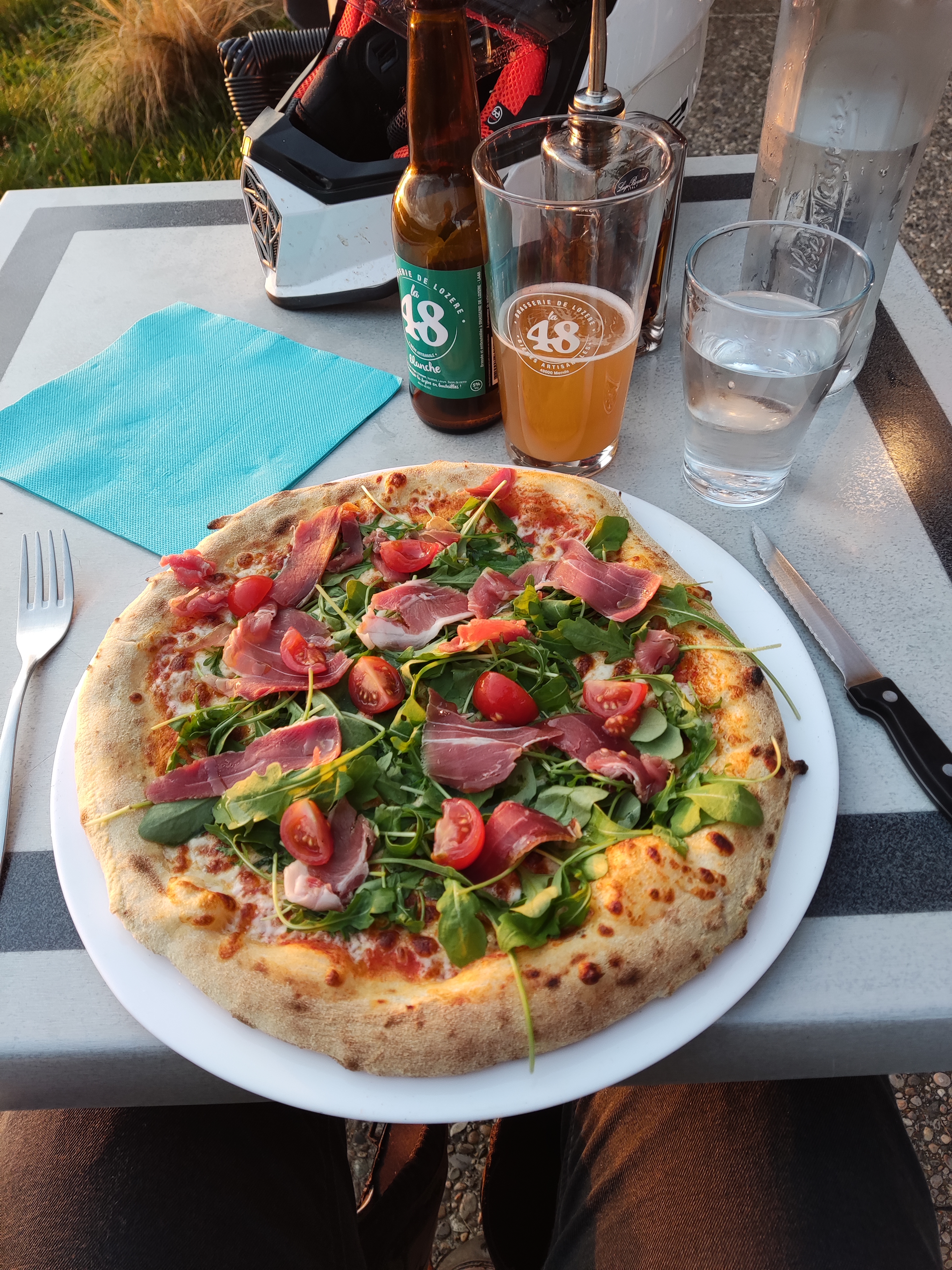 Biere en terrasse + pizza à emporter. Excellentes. Les 2 !! Découverte d'une blanche ipa à la pression. Et dégustation de la chorizo avec une pate fine et croustillante (garniture très copieuse).