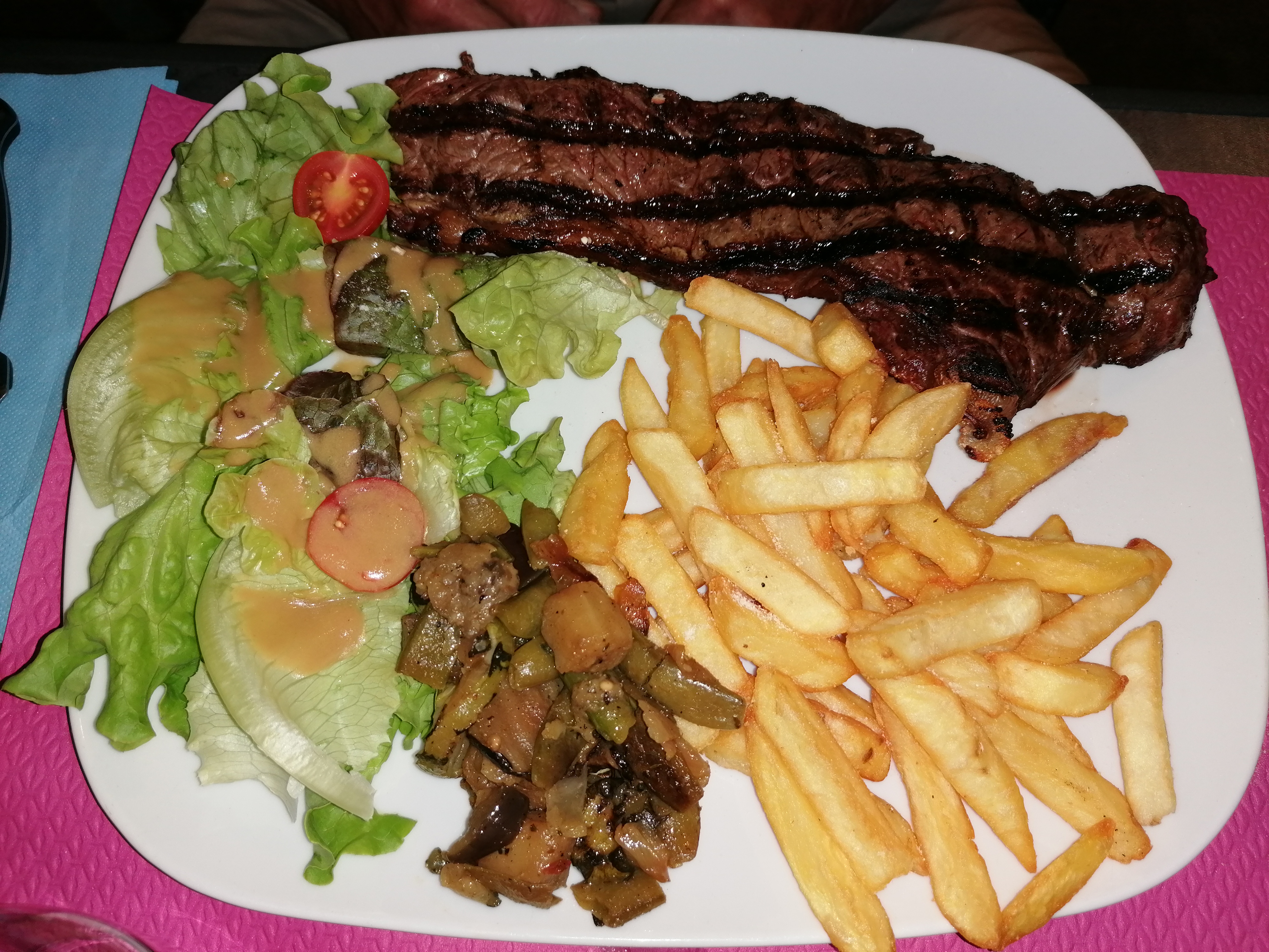 Parfait ! La viande était exceptionnelle, pour un prix ultra raisonnable, et avec une belle quantité de frites maison ! Je recommande :)