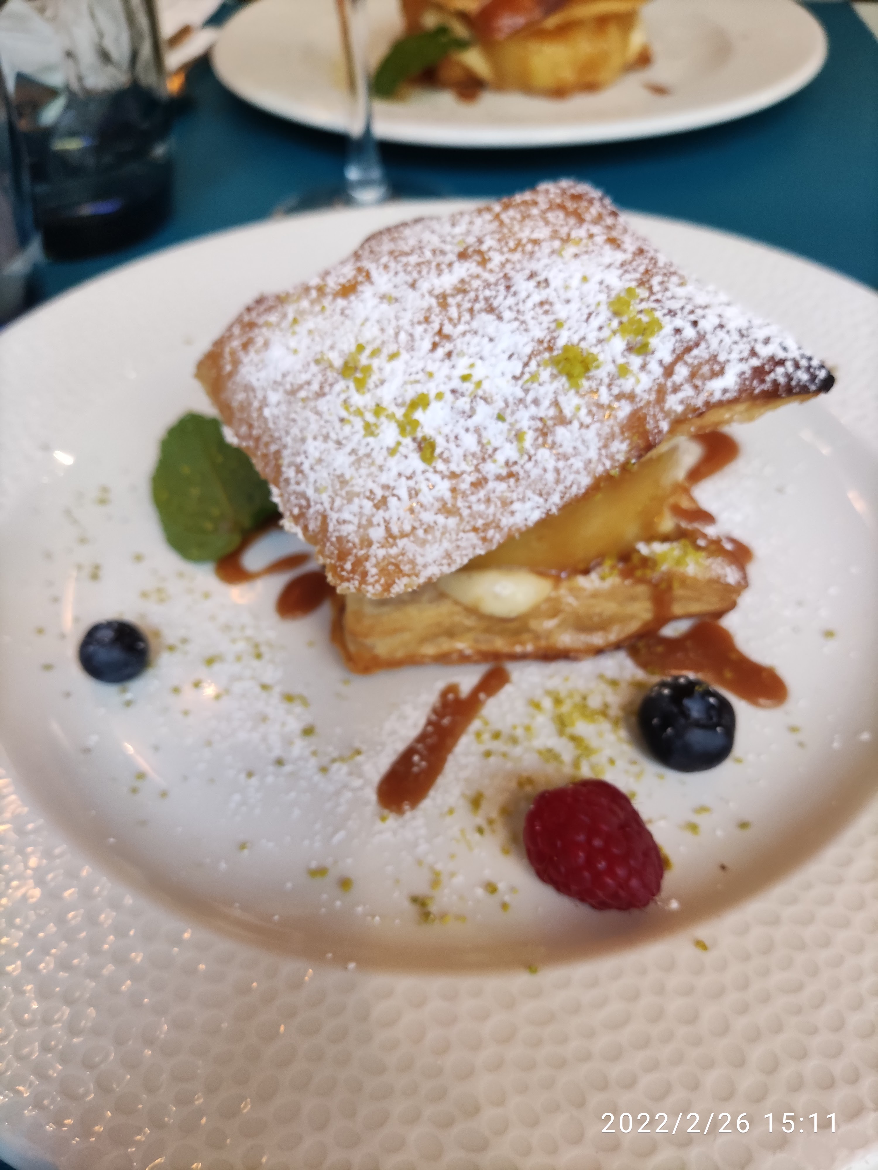 Beaucoup d'attente, cuisine plate. On ne s'est pas risqué à prendre un dessert. Total, 1 entrée, 3 plats et une bouteille de vin 111 euros. Cher pour ce que c'est. Je n'y retournerai pas