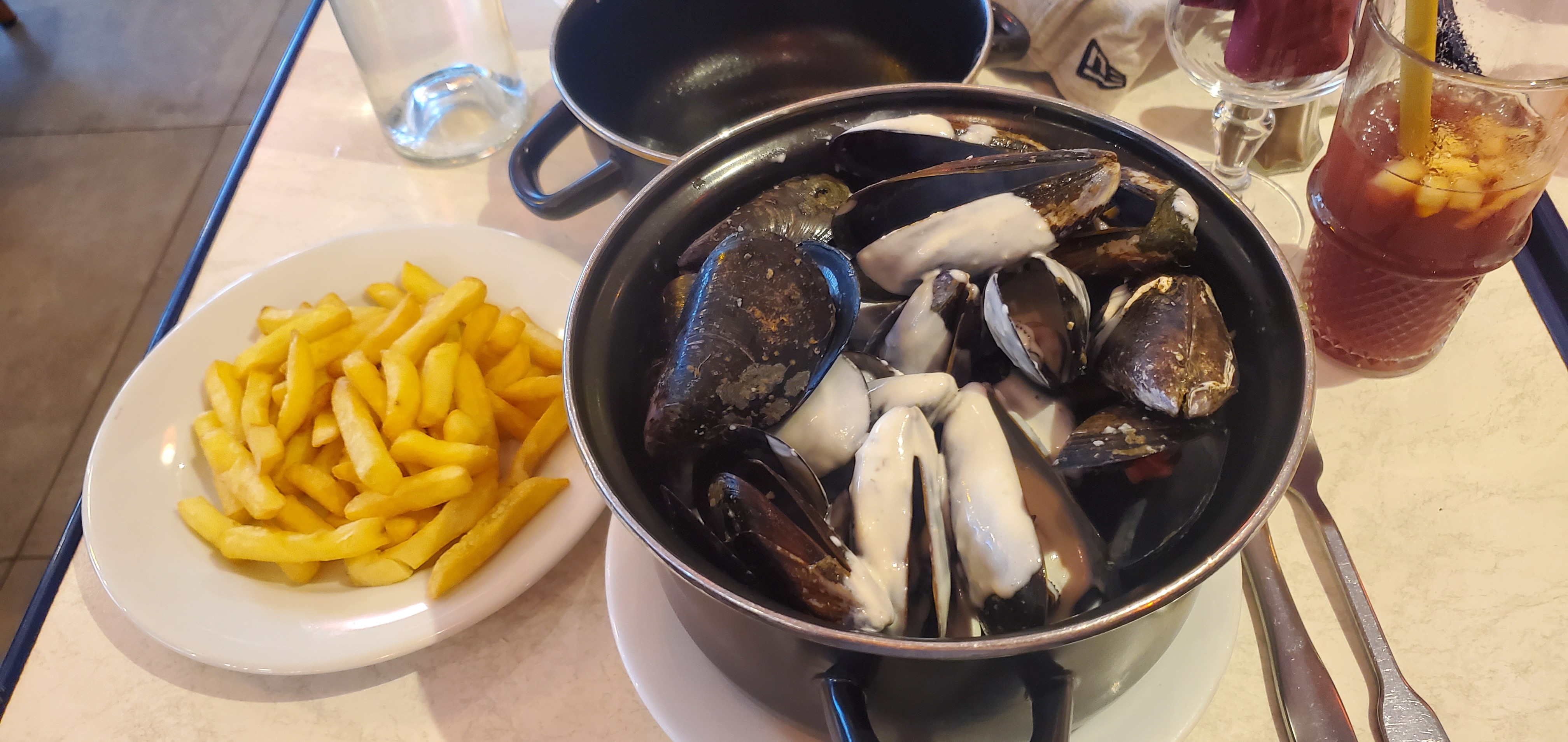Visité le 26 mars 2023. Malgré l'heure du déjeuner et la foule de clients, le service était rapide et convivial. J'ai adoré la nourriture : les moules à la sauce blanche étaient fraîches et délicieuses, les frites étaient croustillantes. Les prix ne sont pas élevés pour une place dans une ville touristique.