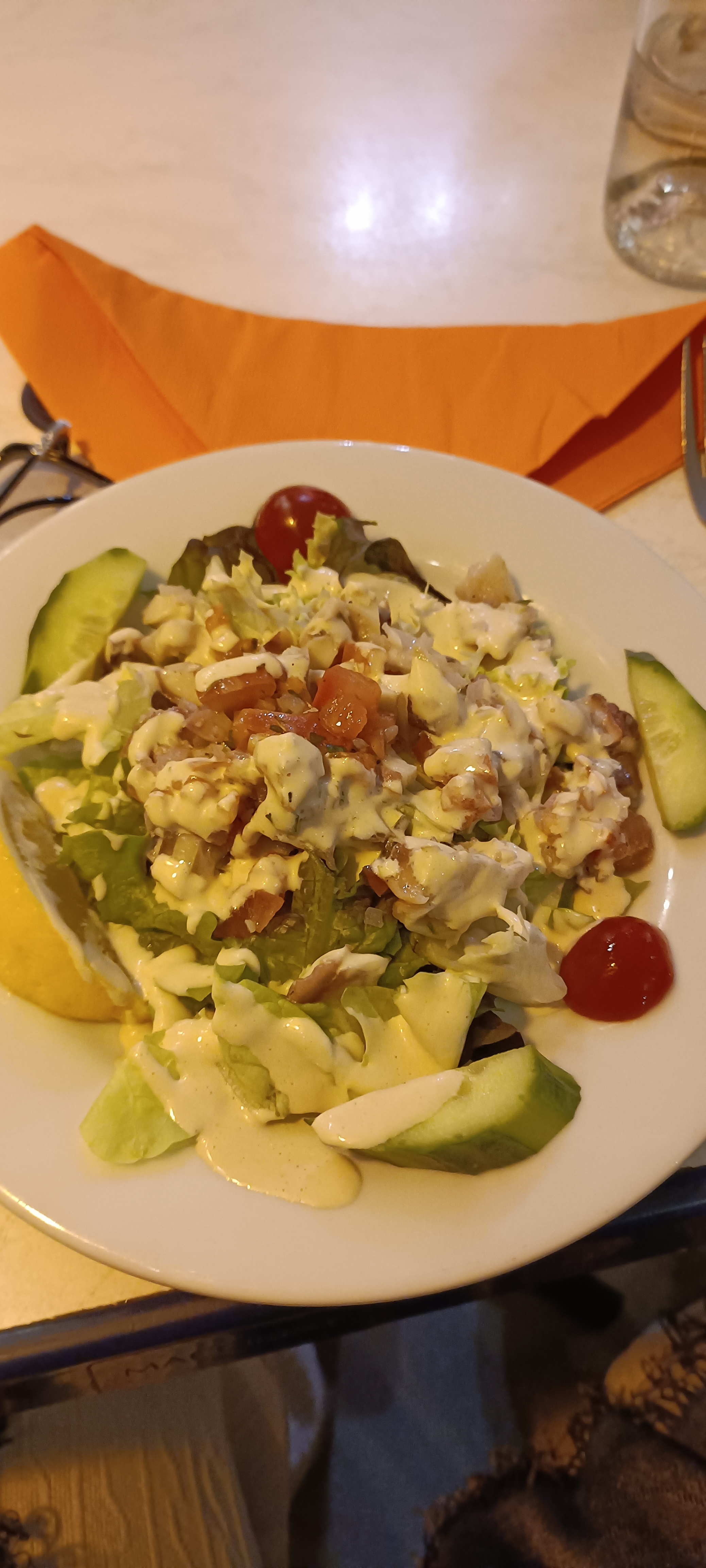 La nourriture est très très bonne !! Et le personnel bienveillant et très gentil. Franchement si vous chercher en endroit sympa à manger avec une bonne ambiance je conseil fort ! (Salade mixte très bonne)
