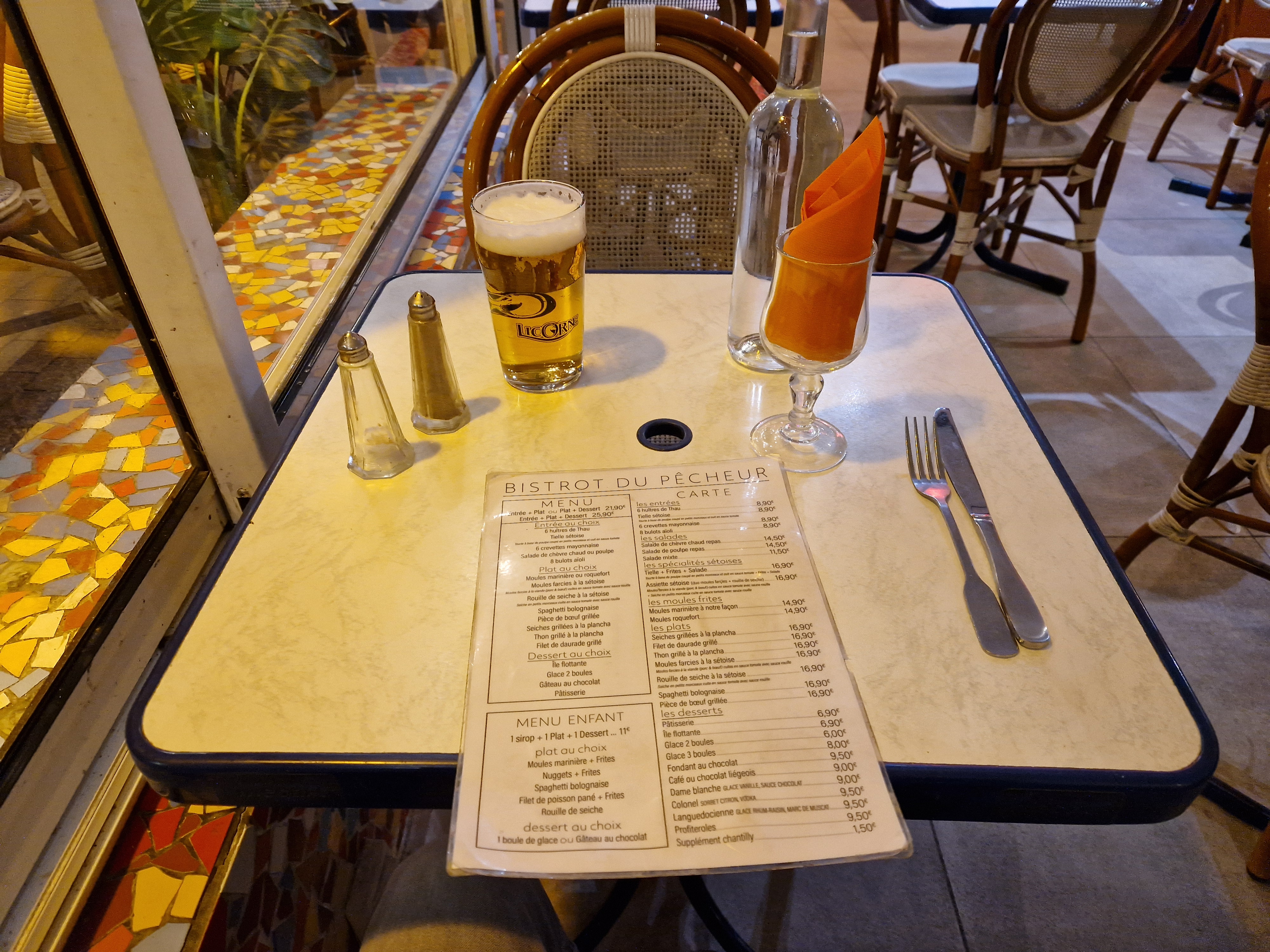 Habitué aux bons restaurants, je craignais l’arnaque à touristes. Ça y ressemble , racolage dehors… et pourtant. ..😁Service aux petits soins, pain, beurre, échalote, citron, eau … Très bonne humeur des serveurs. En vacances on apprécie. Service et commande rapide . Les huîtres étaient bonnes et bien ouvertes, moules impeccables, frites non grasses. Du coup nous étions 3, 3 heureux. Des petits resto à touristes peuvent aussi être de bonnes surprises. Merci