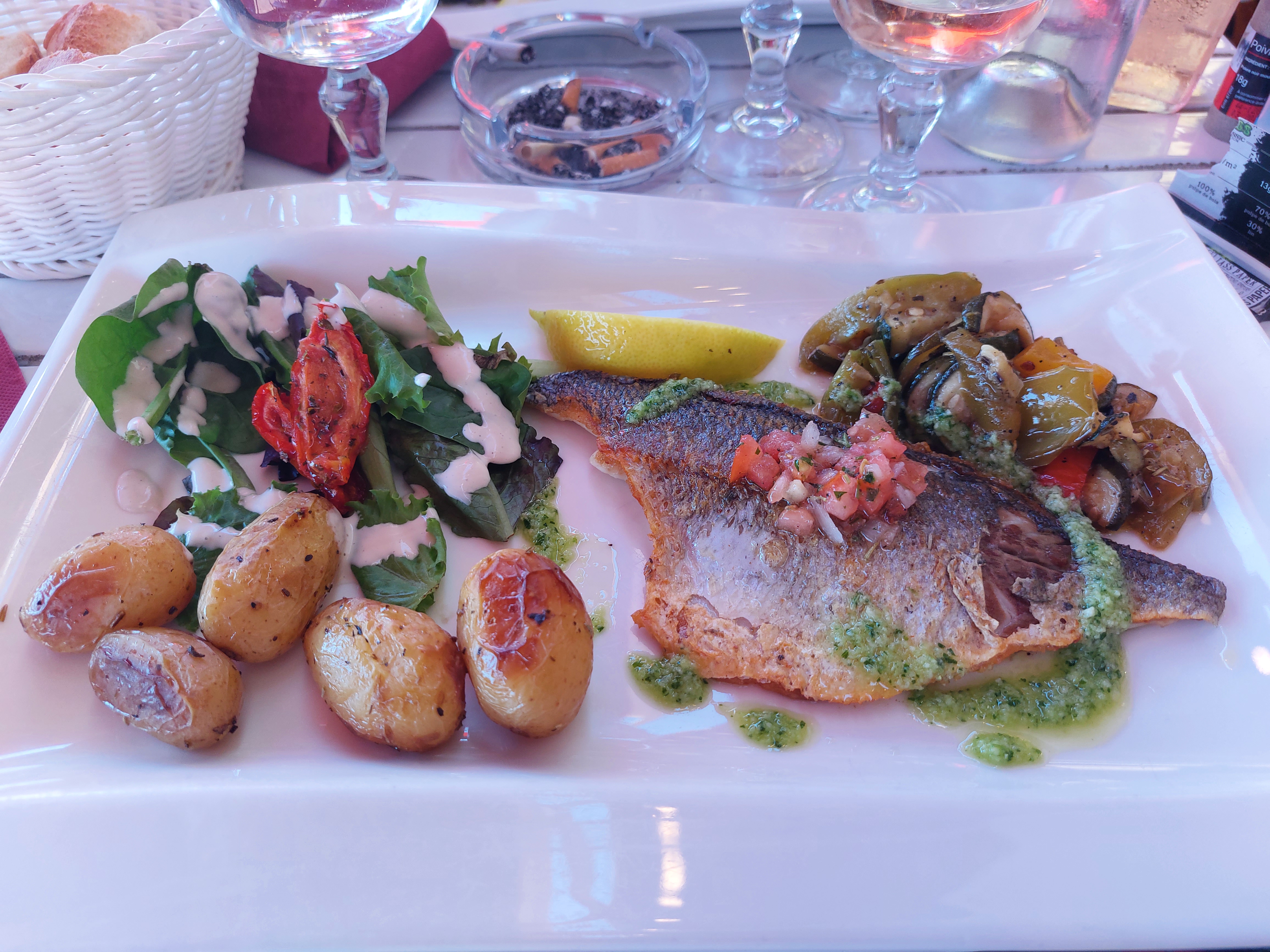 Un super restaurant, un jeune nous a gentillement aborder pour nous dire qu'il y avais une table pour 2 et que c'était encore possible pour manger (14h15). On a super bien manger et un super bon rapport qualité prix. Sur la photo cest de la daurade et moi qui ne suis pas fan de poisson c'était extra!! Un personnel adorable et à l'écoute du client! Je recommande les yeux fermées.