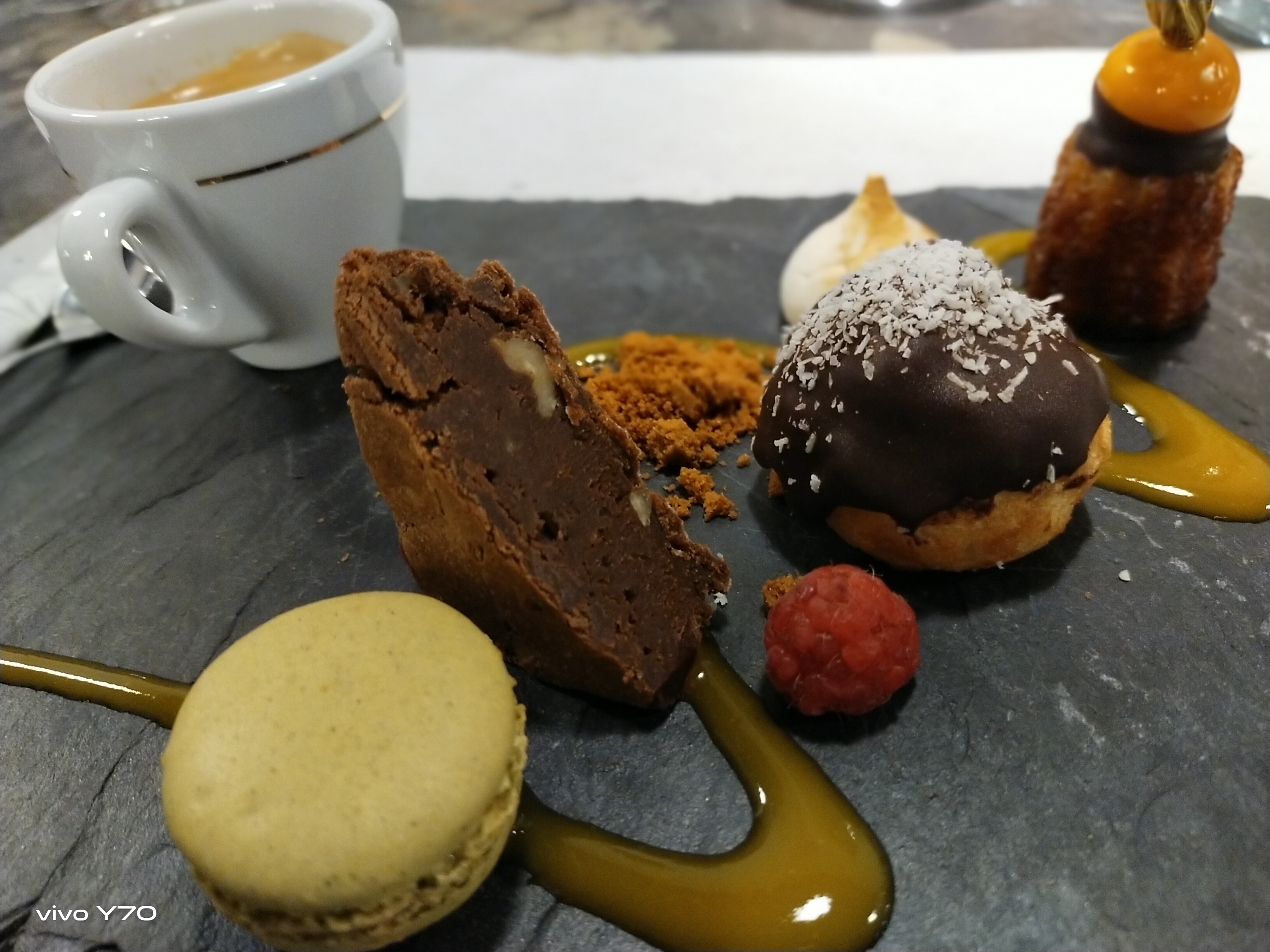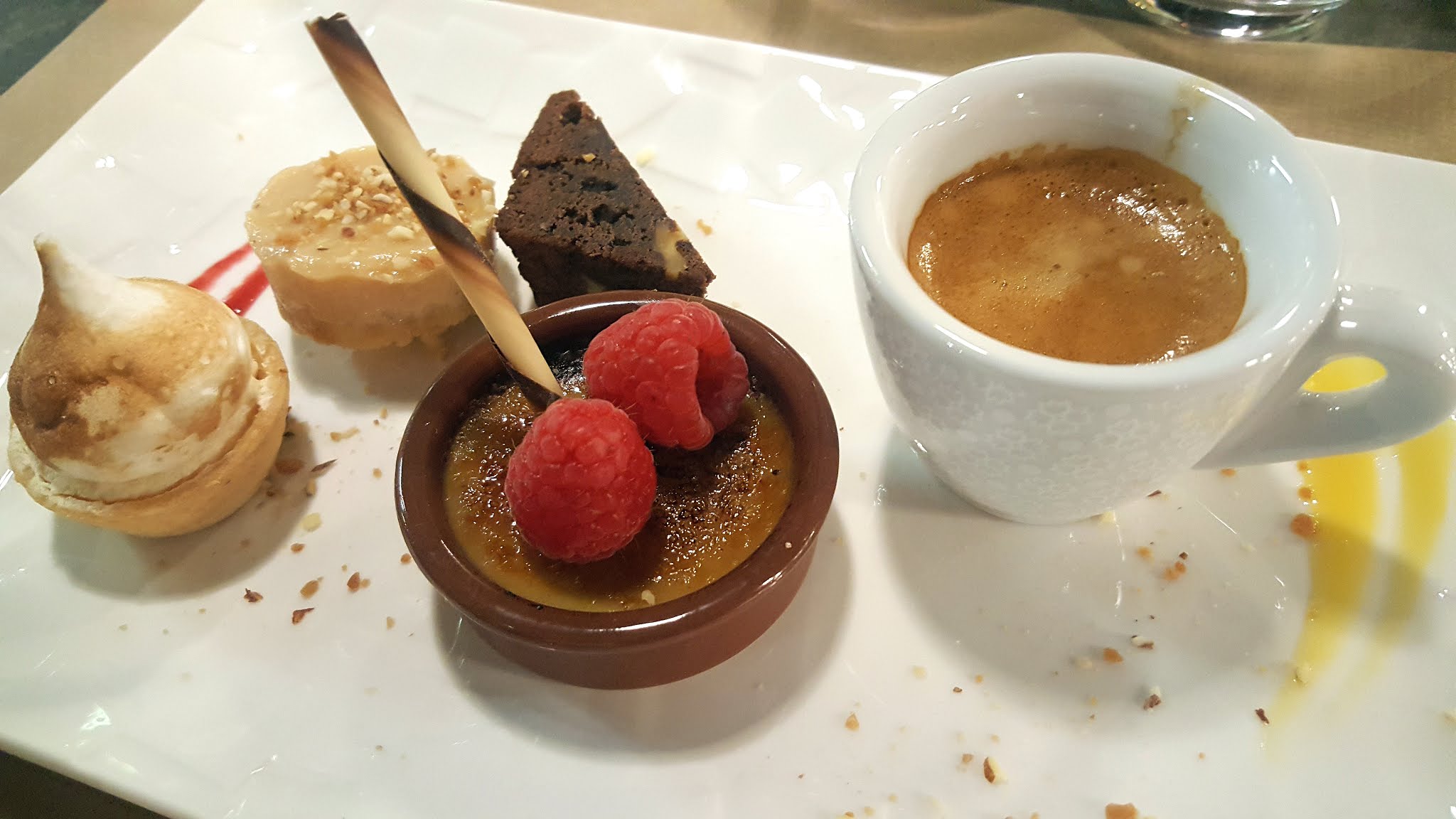DOMMAGE!! Produit frais, présentation parfaite. Mais à part les huîtres et la dessus pas de prise de risque!!! Le reste déçoit :Couteaux remplis de sable, poissons sans saveur très fade, moule sèche, poireaux cuit à l'eau sans goût, encornés sec, sauce persillade aucun intérêt, heureusement la gambas sauve la Parrillada. Café gourmand: C'est un peu mieux, mais manque de goût de saveurs..dommage!! Bref déçu, grosse addition pour un repas moyen.