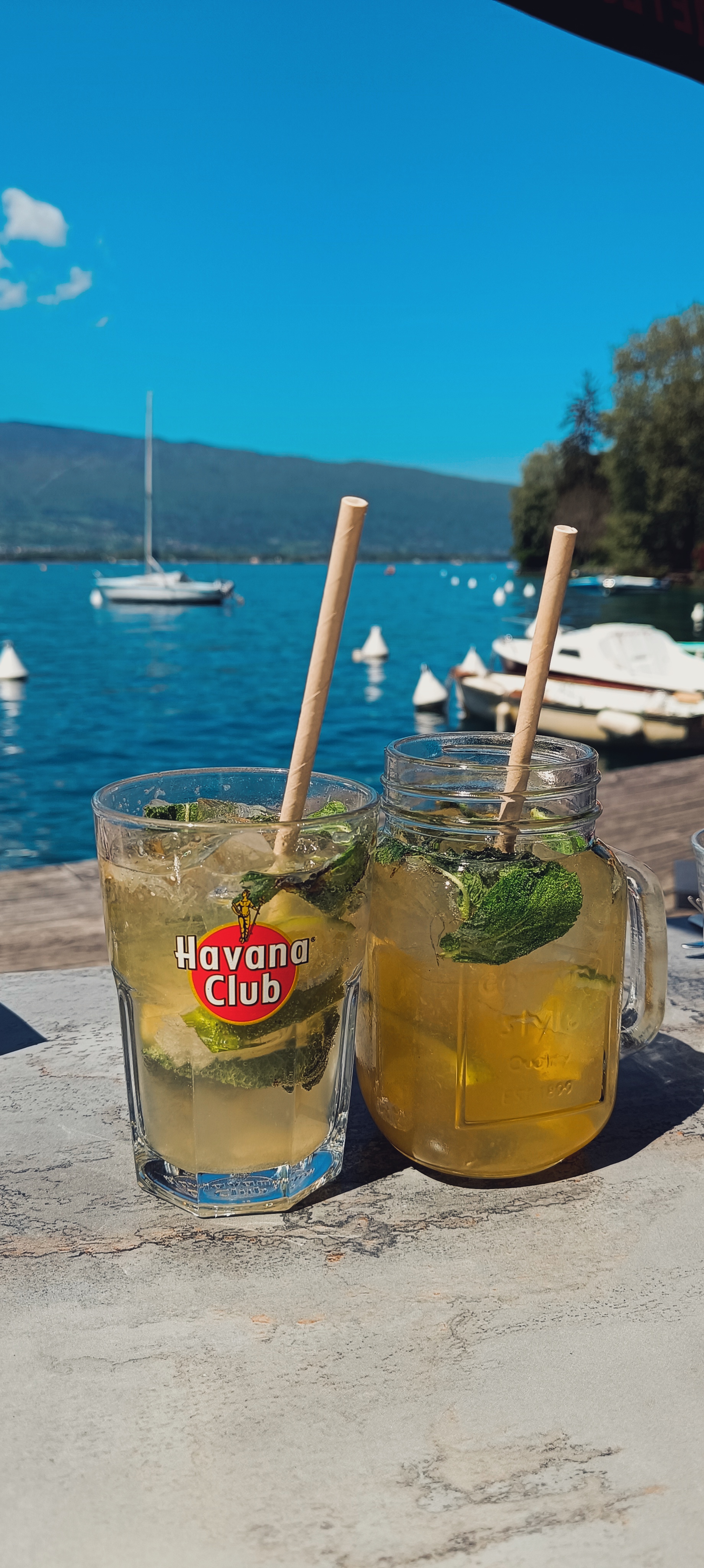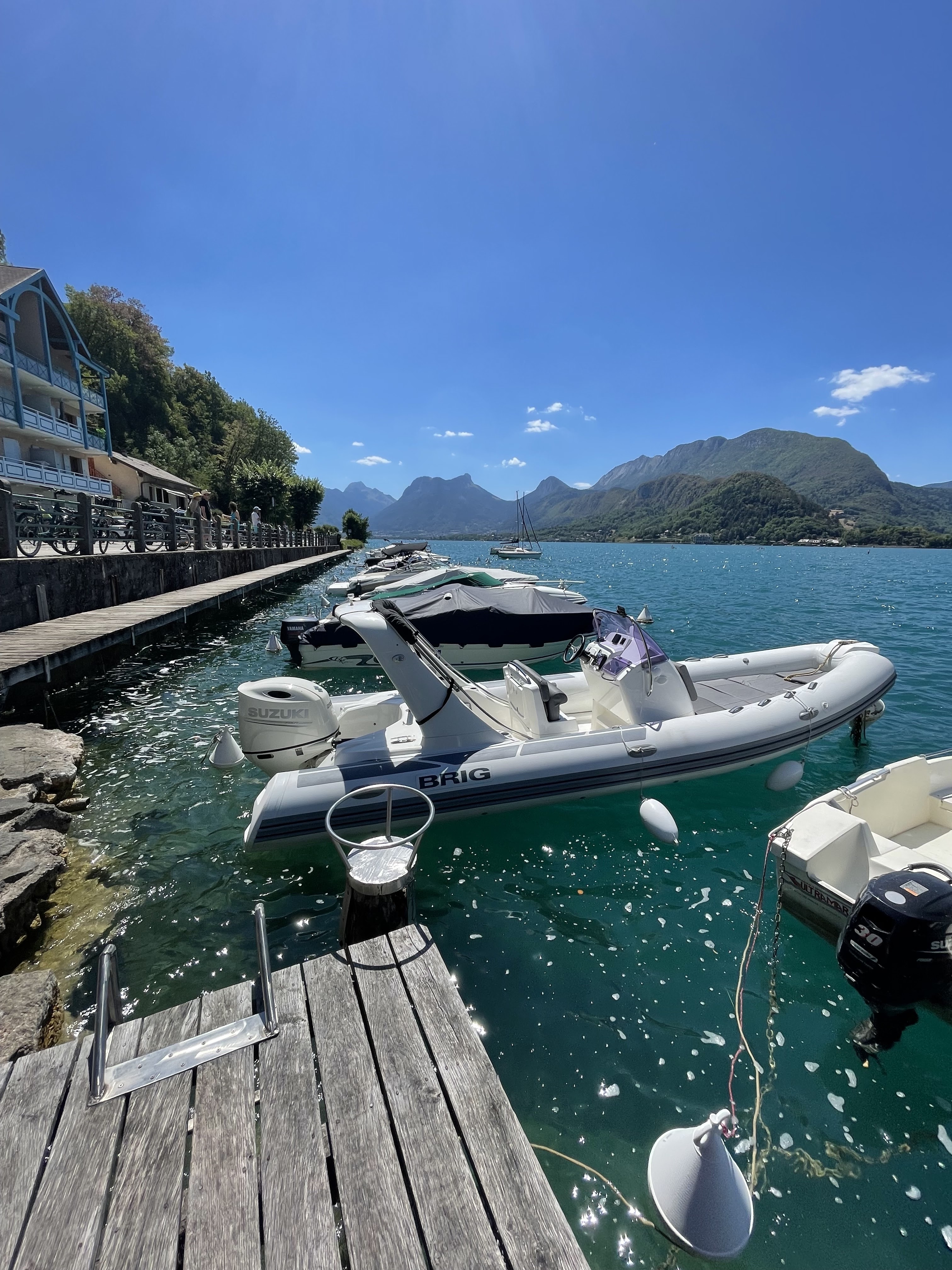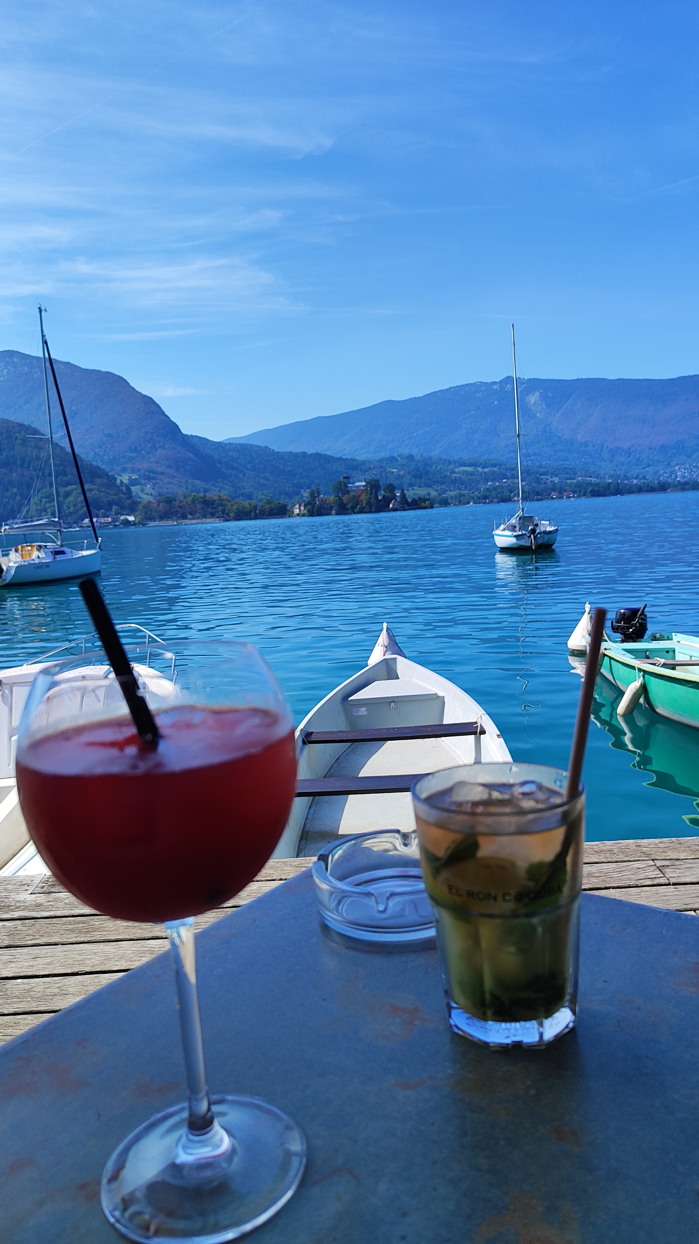 Le temps d'une pause pendant le tour du lac , établissement situé en bas de la descente de Talloires (ou de la côte selon le sens) !! Très bel endroit pour une pause avec vue sur le lac !! Le moins , la circulation automobile juste derrière et la traversée de la chaussée qui doit être faite avec la cmande car il n'y a pas de service du bar au ponton (à l'heure où nous y étions) !!