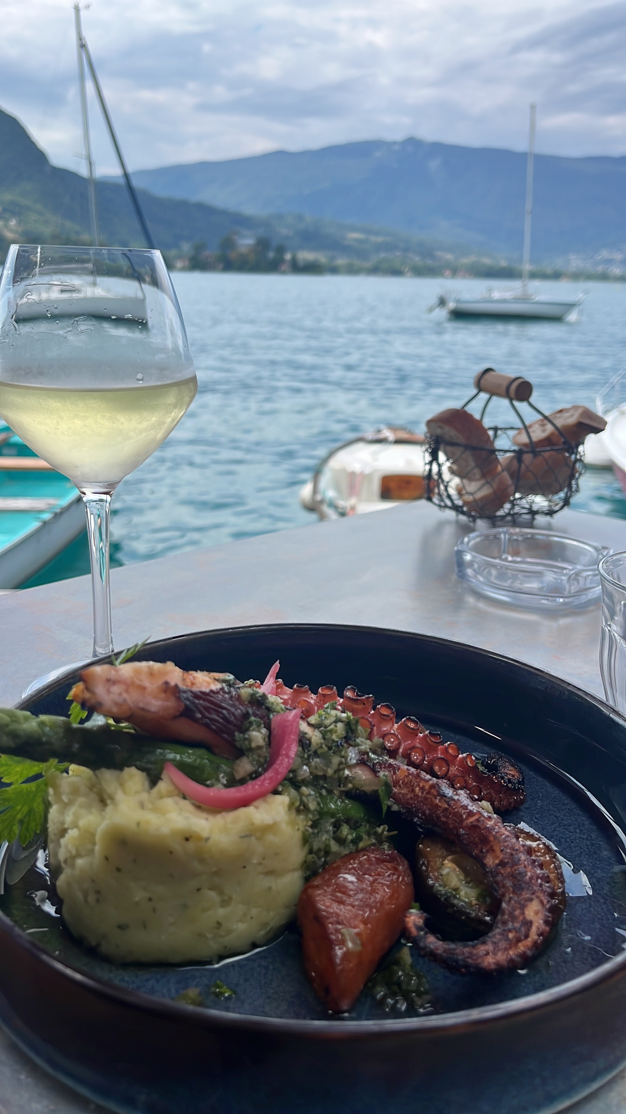 Endroit magnifique sur les berges du lac d'Annecy. Le poulpe était délicieux.