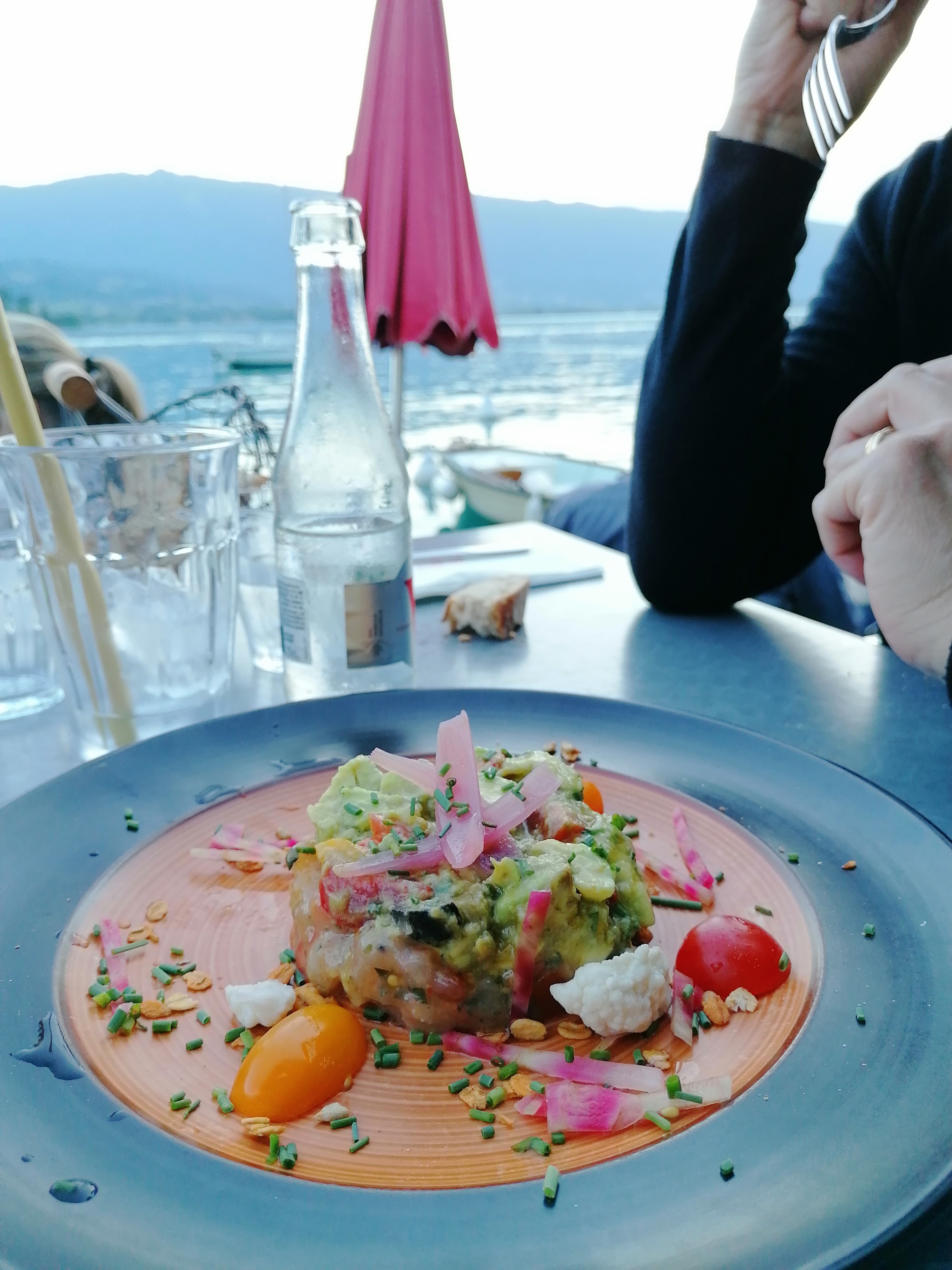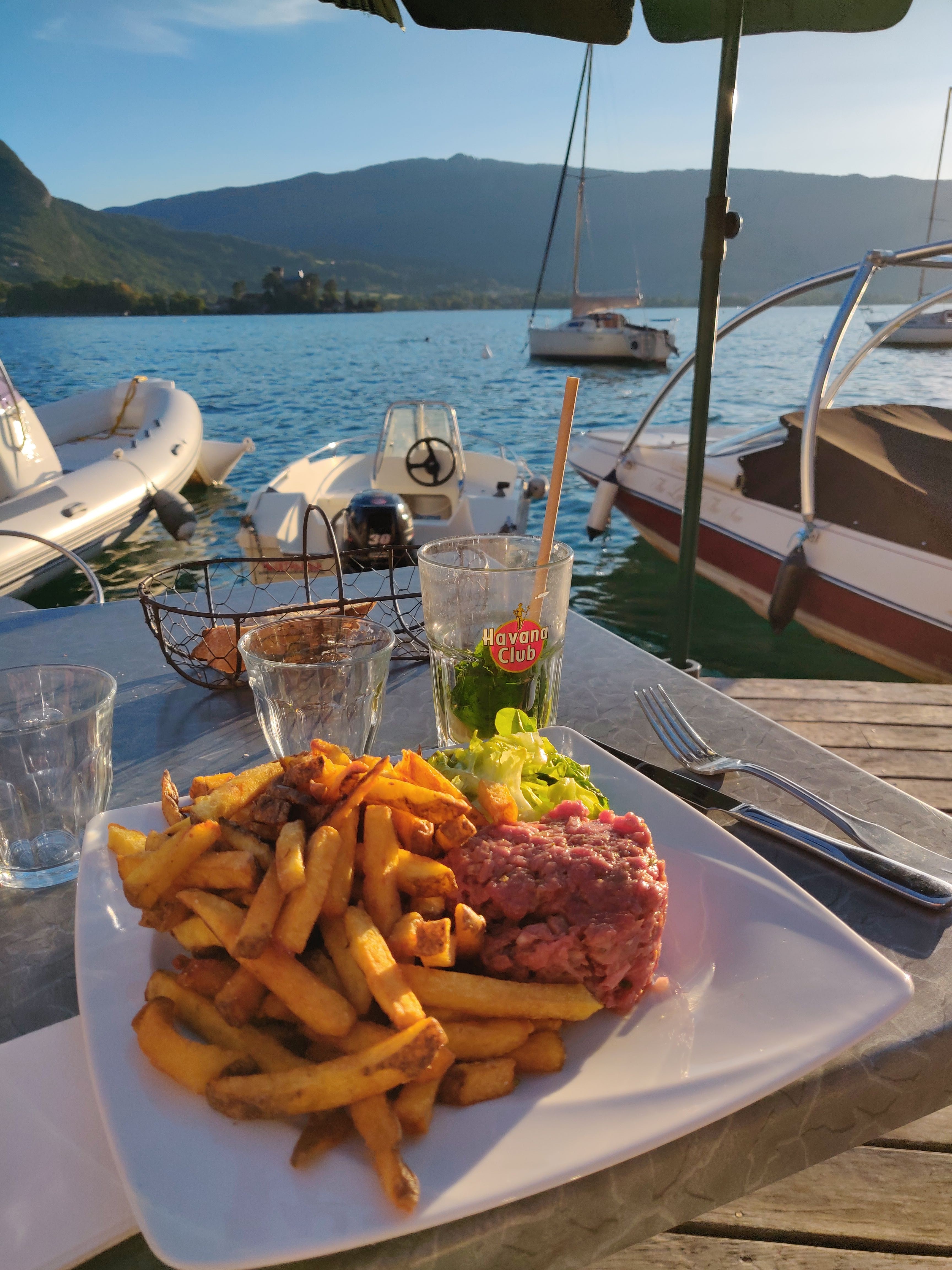 Resto au bord du lac à TALLOIRES. Menu prix raisonnable. Très bon surtout poulpe et légumes grillés et pavlova en dessert. Patron et personnel sympa. Recommandé de réserver pour manger en terrasse au bord de l'eau.