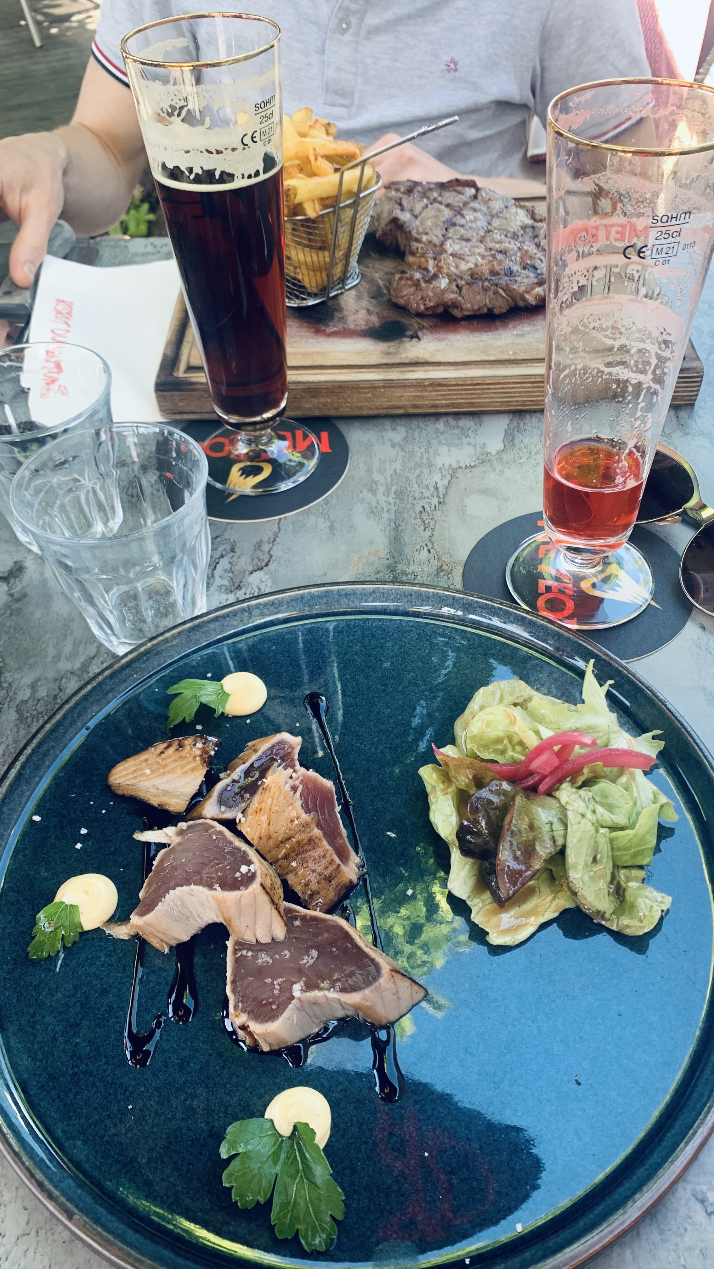 En balade autour de le rive droite du Lac d’Annecy et en manque de batterie pour mon téléphone je m’y arrête pour y prendre une pinte de bière. (Le temps que ça charge) Je cède facilement à la tentation de commander une côte de cochon. Très bonne et bien cuite. Mention spéciale à toute l’équipe pour un service agréable et efficace. Je vous recommande l’endroit mais réservez car les places sont prisées… Le Panorama est incroyable en fin de soirée avec un Spritz.