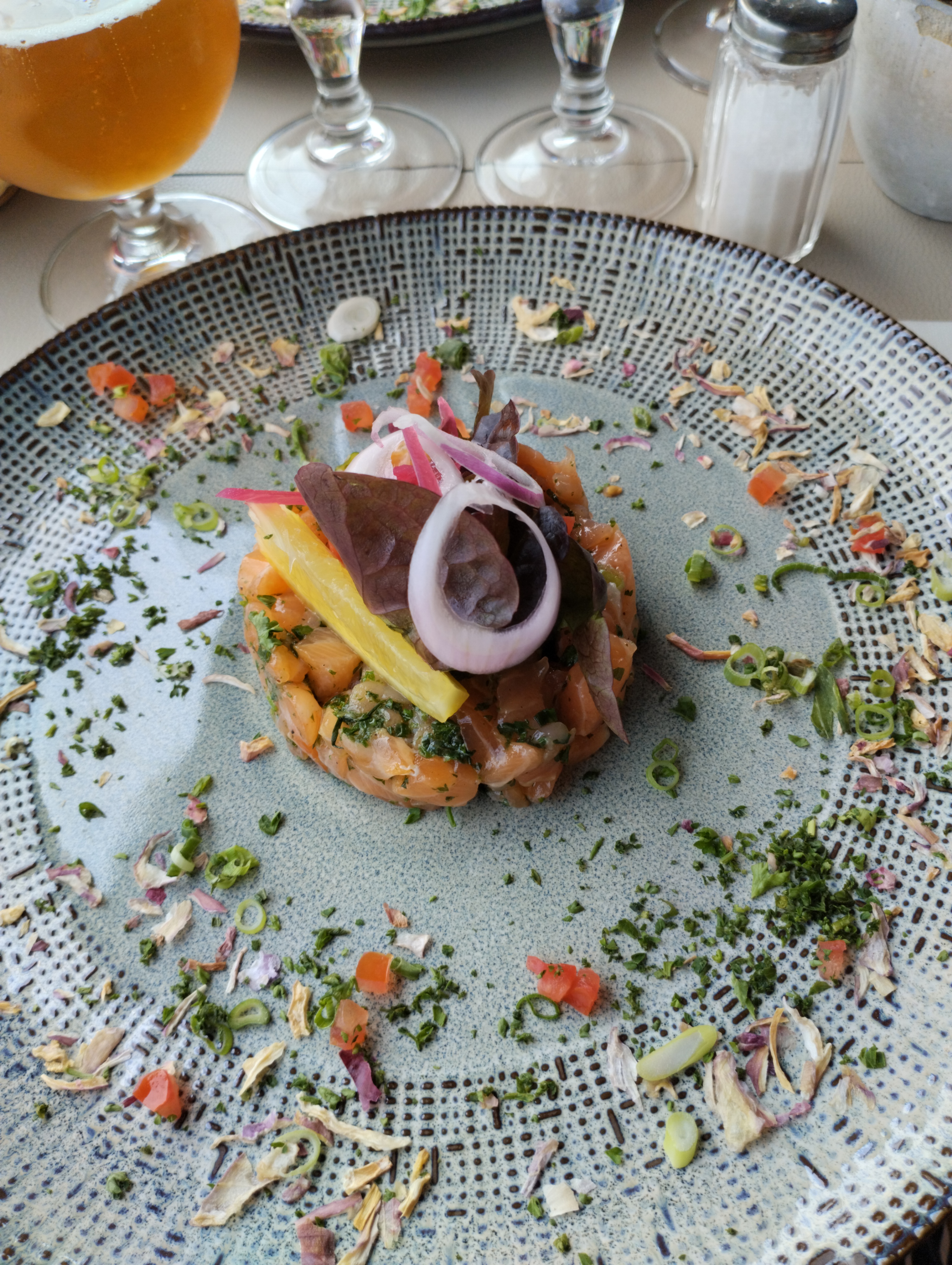 Belle vue depuis le bistrot sur le port, le tartare de saumon est tout simplement excellent. Les serveurs sont très sympas