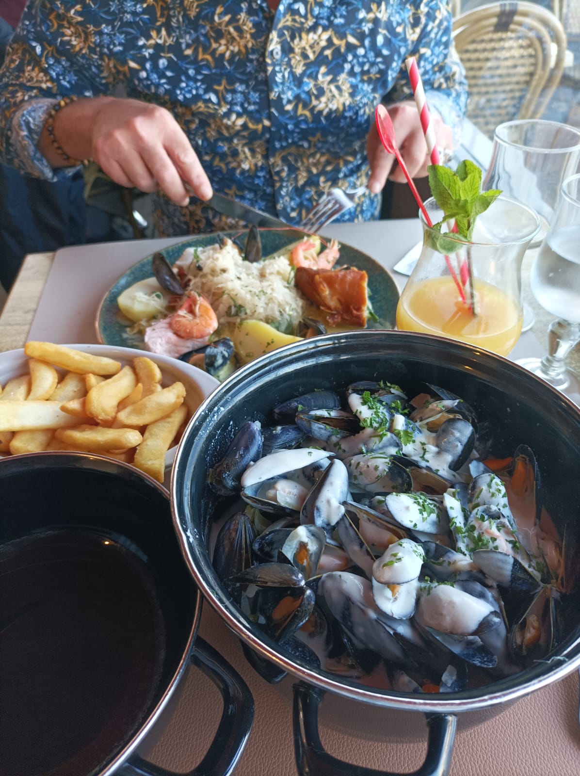 Serveurs tres sympathiques au taquet pour servir au plus vite. Les moules sont tres bien cuites, sauce a la creme au top. On sent la maitrise à la cuisine et une sélection de produit locaux. Clairement pas un resto « à touristes » je reviendrai!