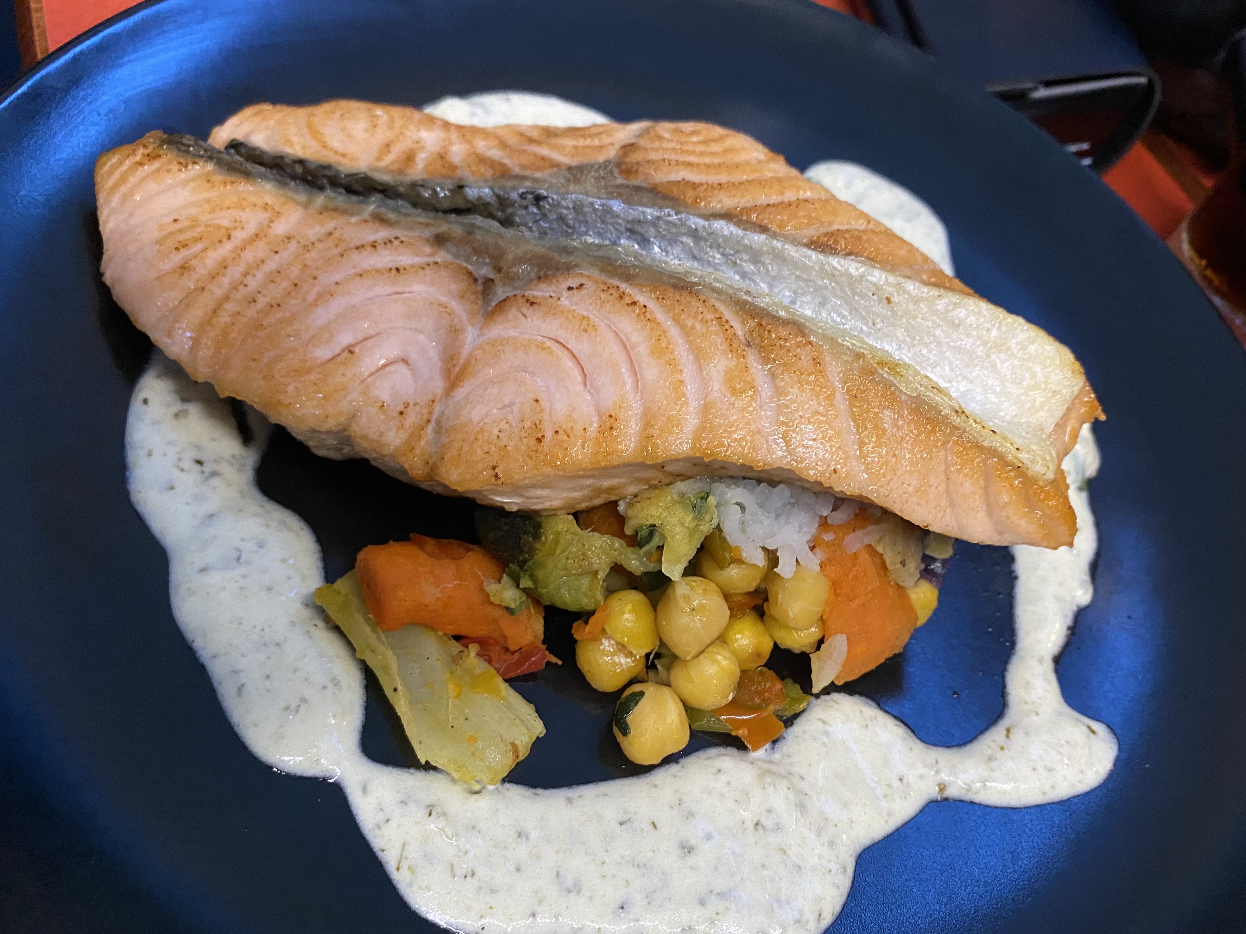 Ce fut un réel plaisir de manger dans ce restaurant. Nous y avons dîné deux jours de suite. L'accueil a de suite été très chaleureux. Nous avons pris du saumon. C'était excellent. Les légumes étaient frais, le poisson bien cuit, pas gras du tout. Et une entrecôte (environ 240g) avec des frites et une salade.La viande était hyper tendre, les frites étaient excellentes et la salade était fraîche et la vinaigrette à tomber par terre. En dessert c'était 1 boule de glace caramel au beurre salé et la tarte aux pommes maison qui était vraiment très très bonne. Ce sont des restaurateurs qui prennent soin de leurs clients. La nourriture est très bonne. Les prix sont abordables. c'est un lieu convivial. Je recommande ce restaurant sans hésiter.