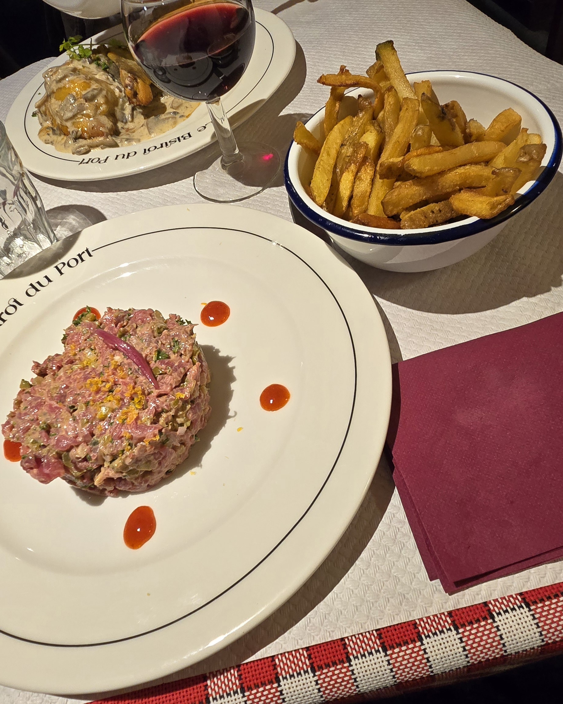 Repas correct, faux filet tendre mais sans goût, frites maison pas croustillantes.Tarte tatin bof…Tout simplement une brasserie pas un bistrot.