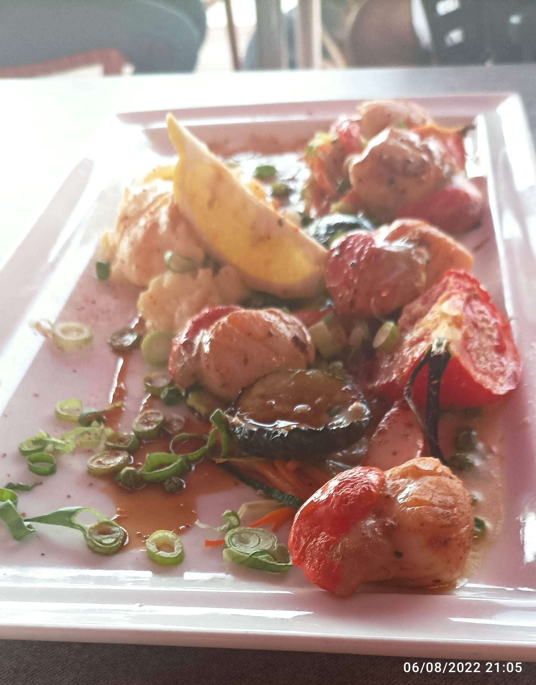 Le tartare de saumon à la mangue est très bon accompagné de frites maison fraiche. Par contre les noix de st jacques étaient trop cuites et surtout pleines de sable. Pas pu les manger