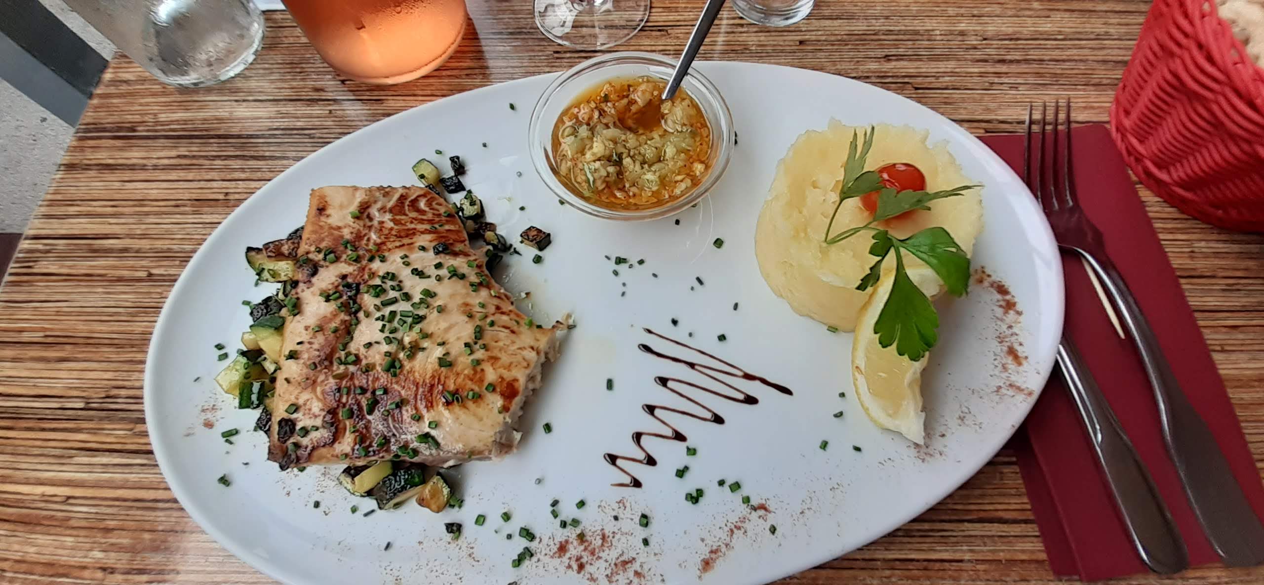 On voit que le chef aime cuisiner le poisson ! Et l'accompagnement est original, coloré beau et bon. Une bonne adresse à port médoc