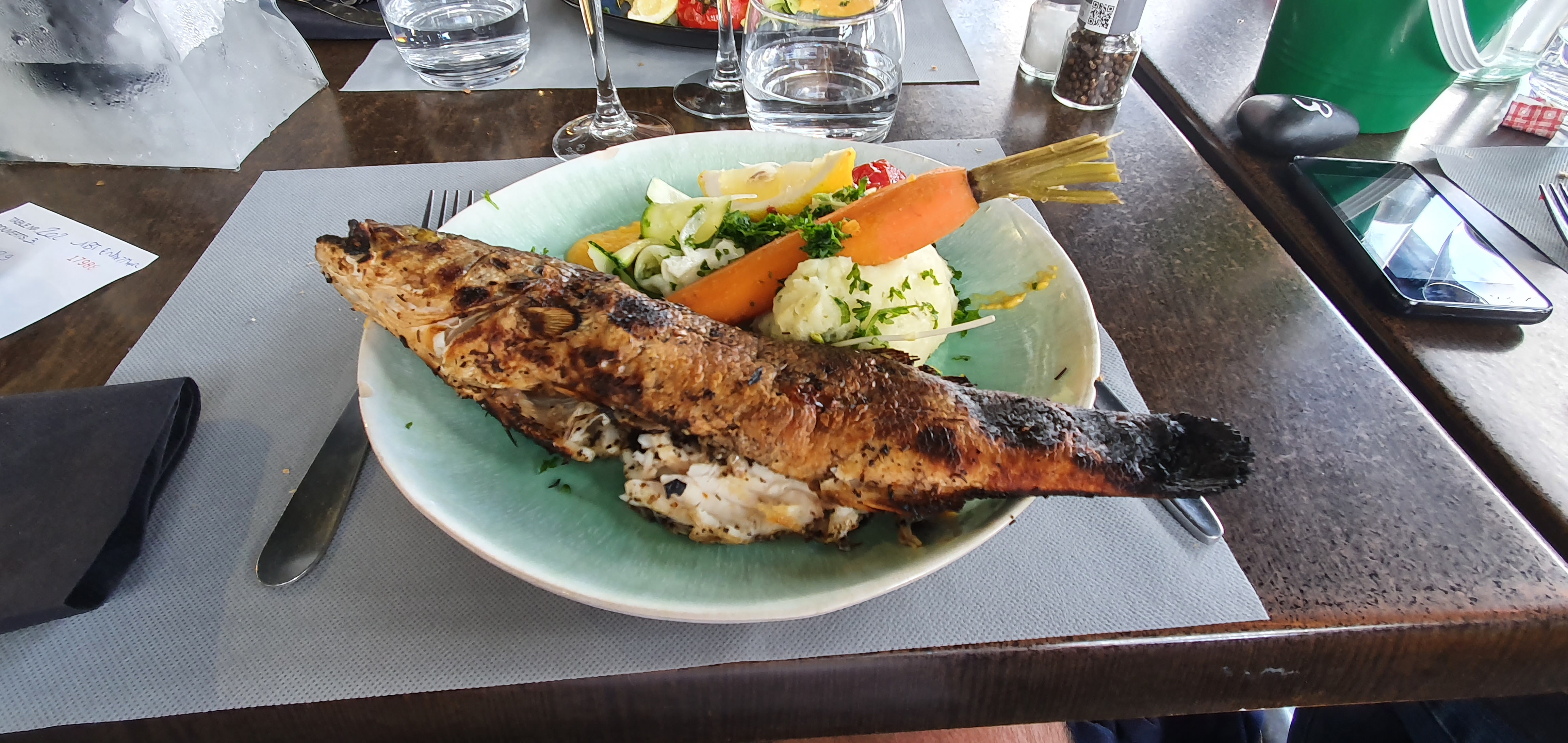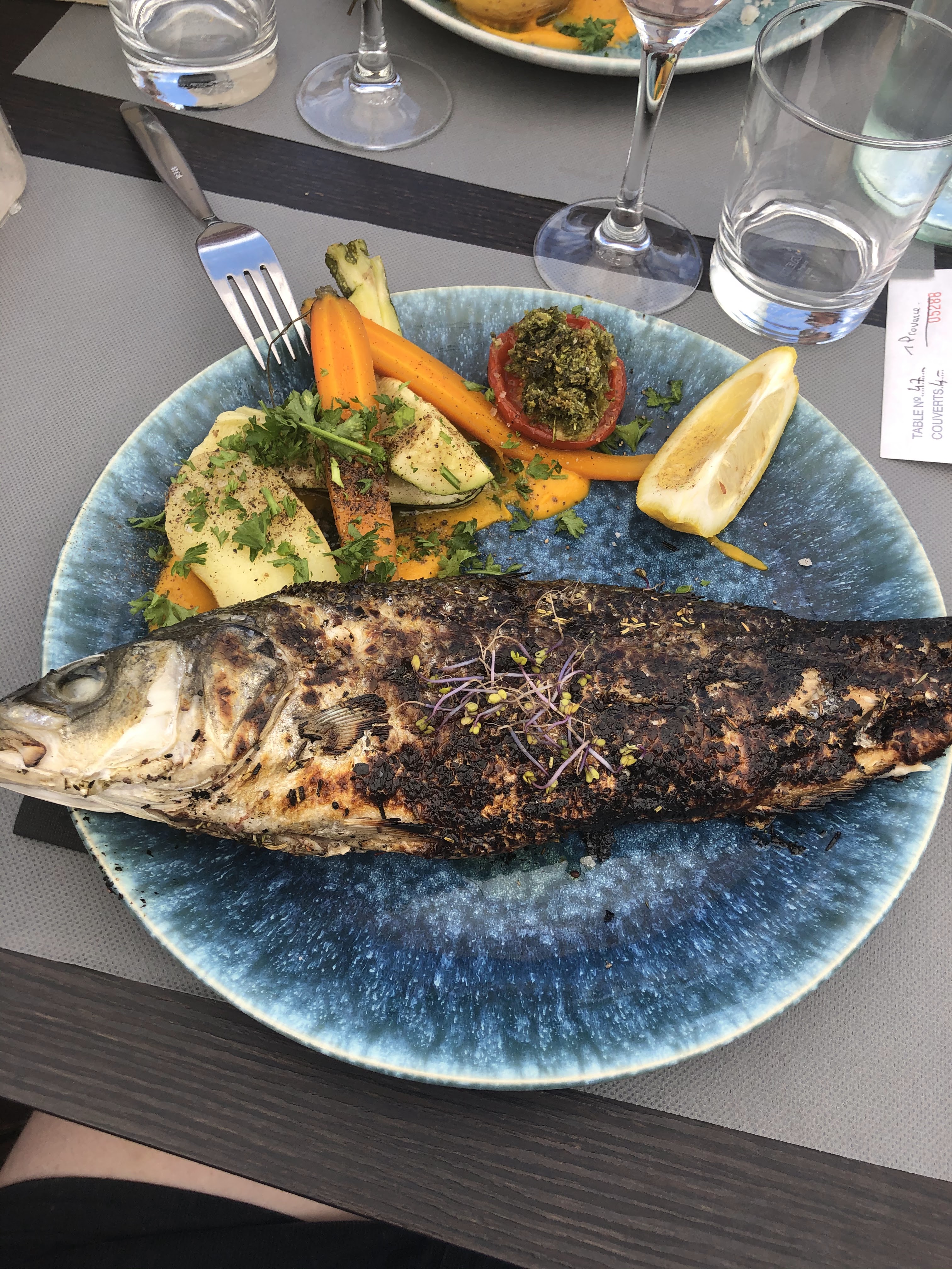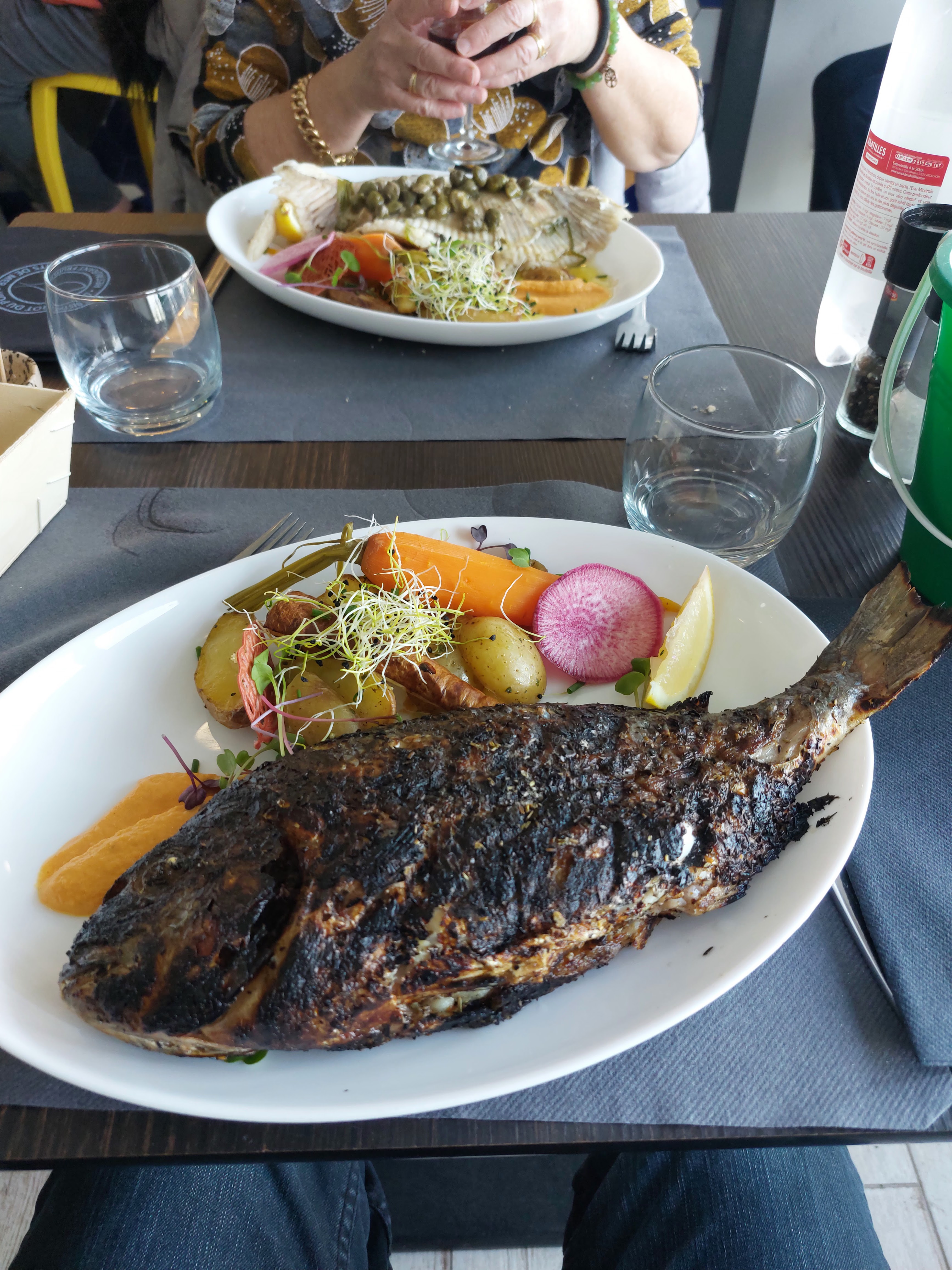 Super restaurant de bord de mer, le menu du jour est top ! Le mulet grillé est plus que généreux 😉