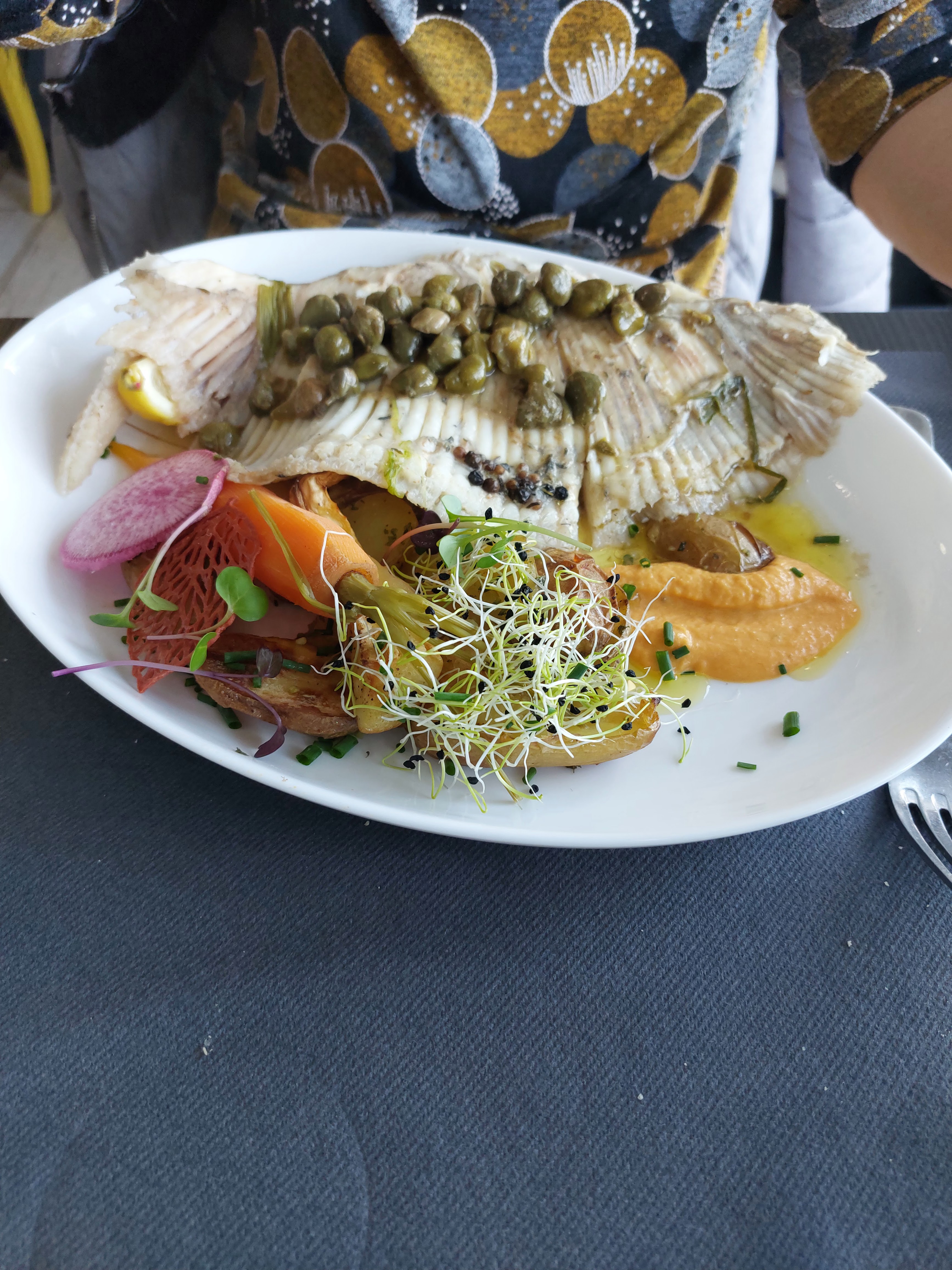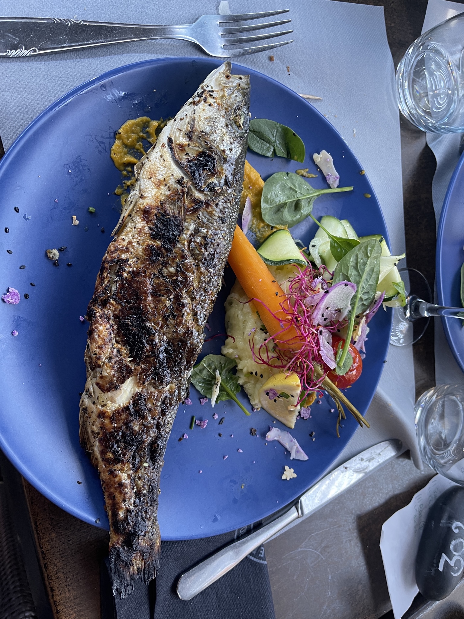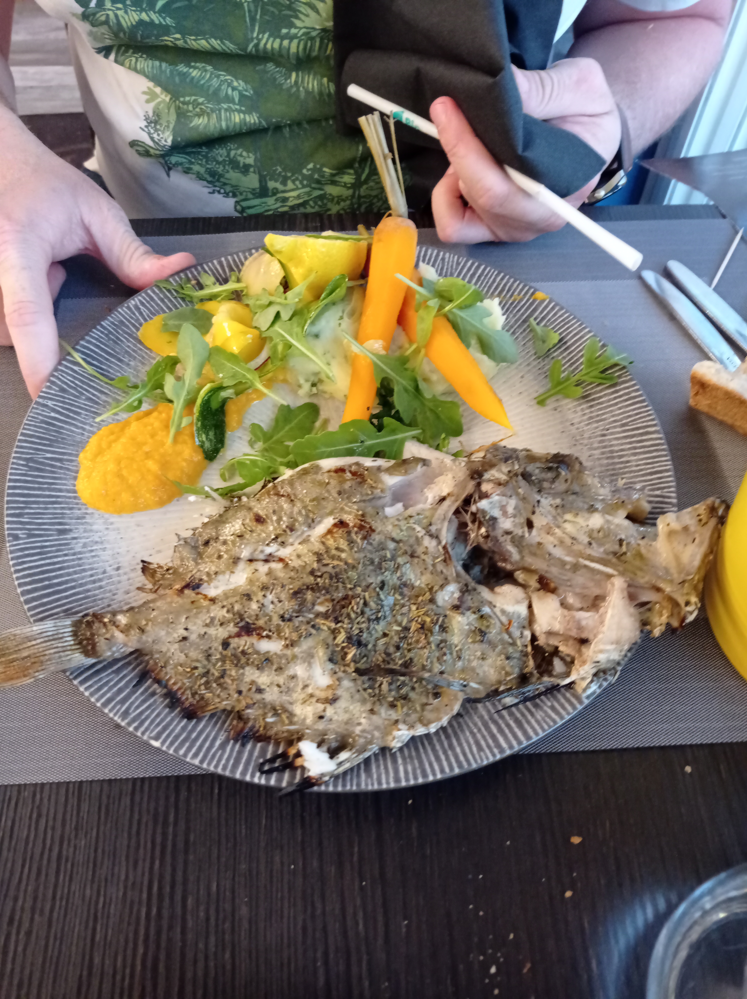 Super restaurant de bord de mer, le menu du jour est top ! Le mulet grillé est plus que généreux 😉