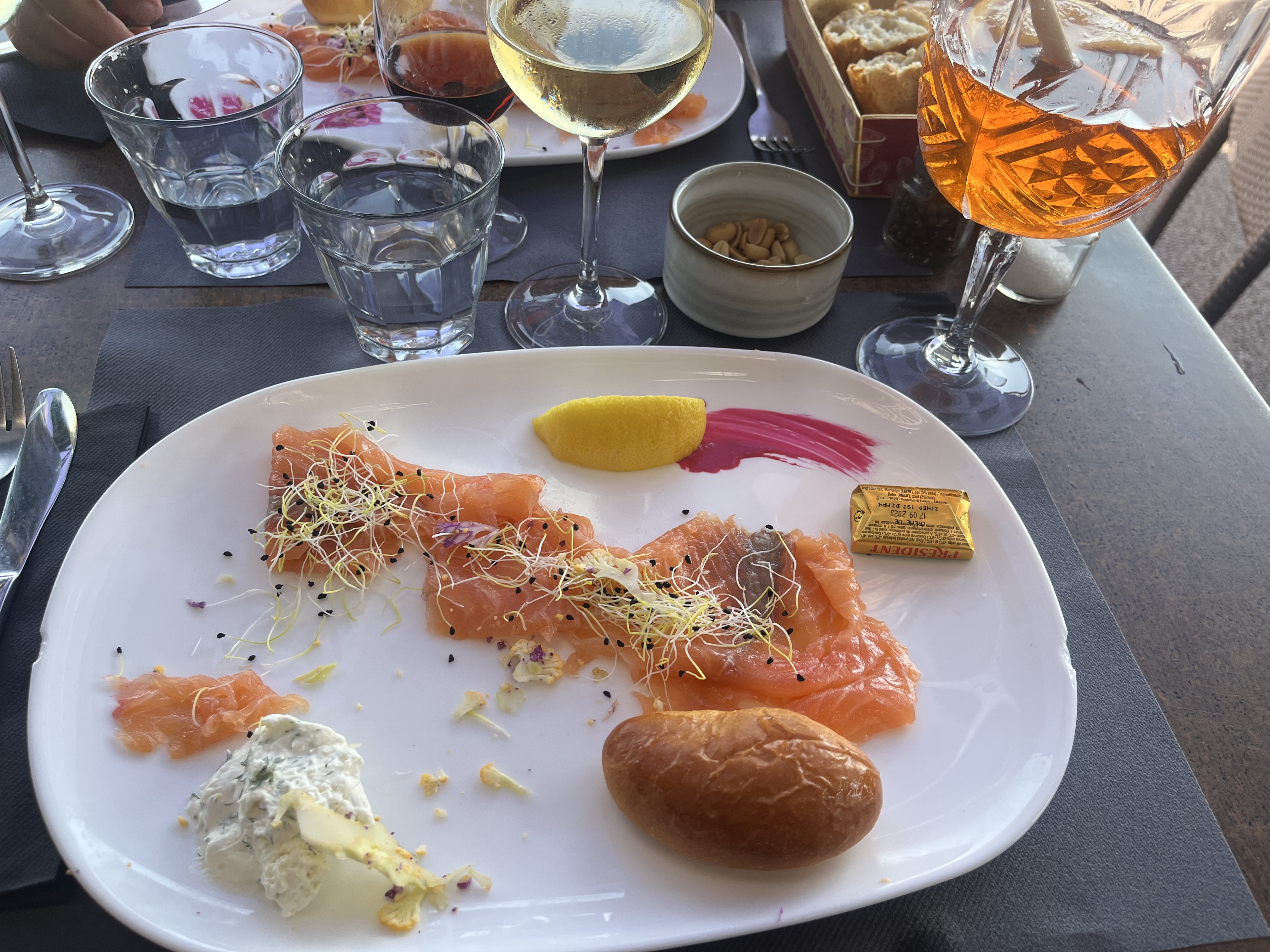 1ère terrasse de l'année avec Dorian pour nous accueillir, la météo, la vue, le repas, le service tous les voyants étaient au vert! À refaire très vite !