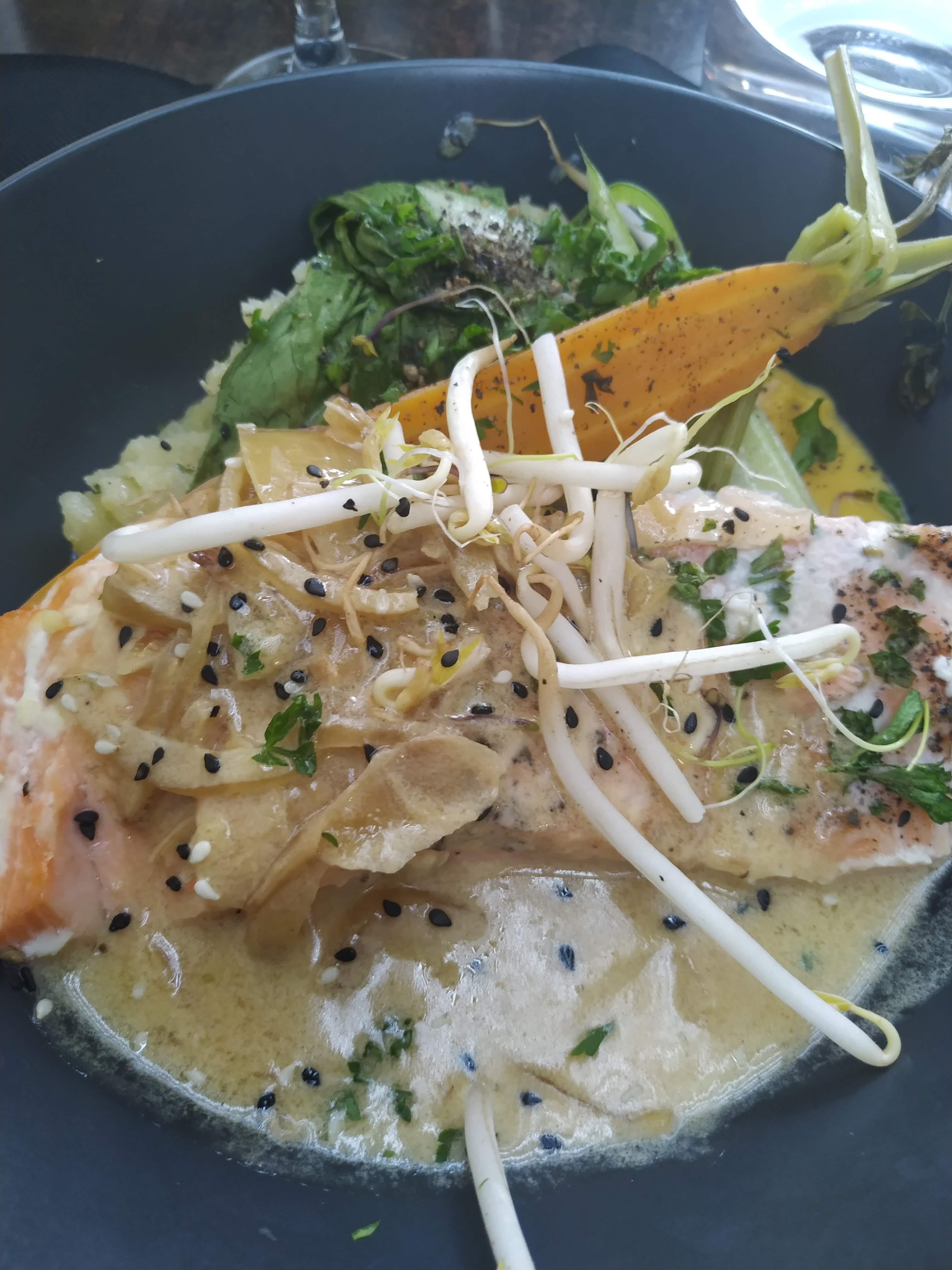 C'est un sans faute ! Du repas au service, tout était au top. Les assiettes sont belles et très bien garnies, nous avions du mal à trouver une petite place pour le dessert ! Le plat de gambas aux herbes dans le menu est magnifique. Le service était très agréable. Tout le monde a le sourire et ça met une belle ambiance. Nous sommes contents de laisser un pourboire à la fin du repas car c'est mérité ! Je recommande à 100%.
