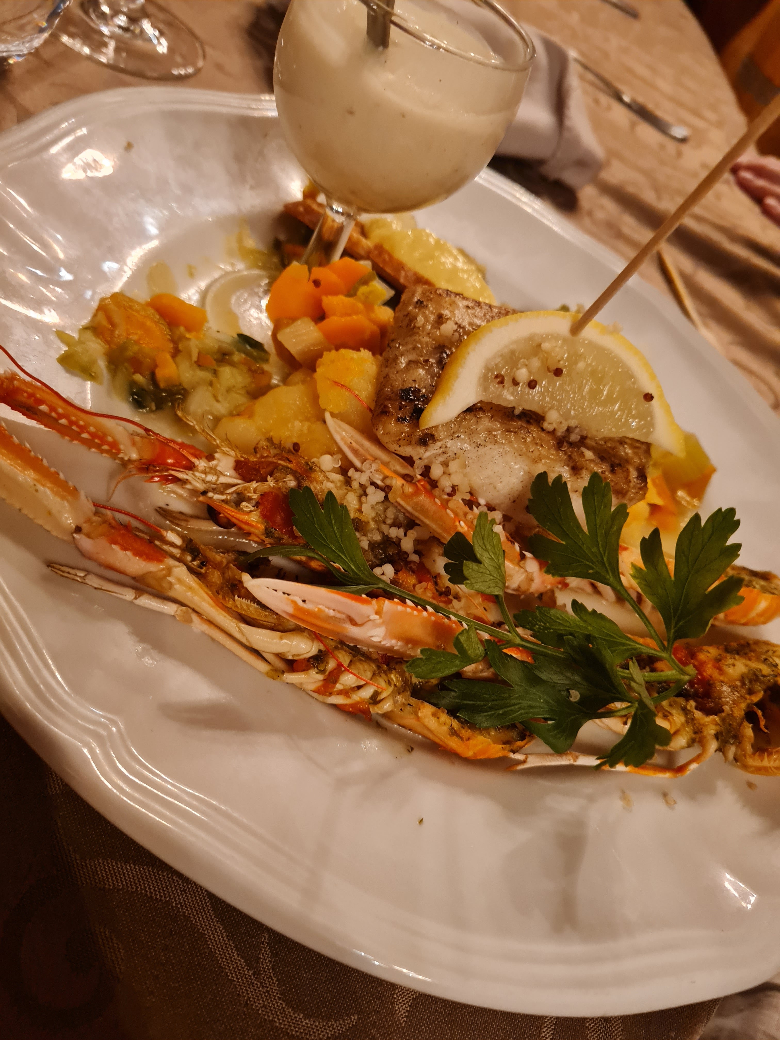 Excellent restaurant sur tous rapports !!! ; une table mémorable et incontournable ; des produits frais et goûteux ; le tout dans une ambiance exceptionnelle et extrêmement conviviale ; un bouillon donnant le goût adéquat aux crustacés et langoustines ; des professionnels adorables ; bref ce fut notre « cantine » le temps d’un we ….à se rendre absolument !!!! Bravo à tous et merci à Alexandre ; Dorian et son papa temporaire (rires) et à toutes et tous !!!