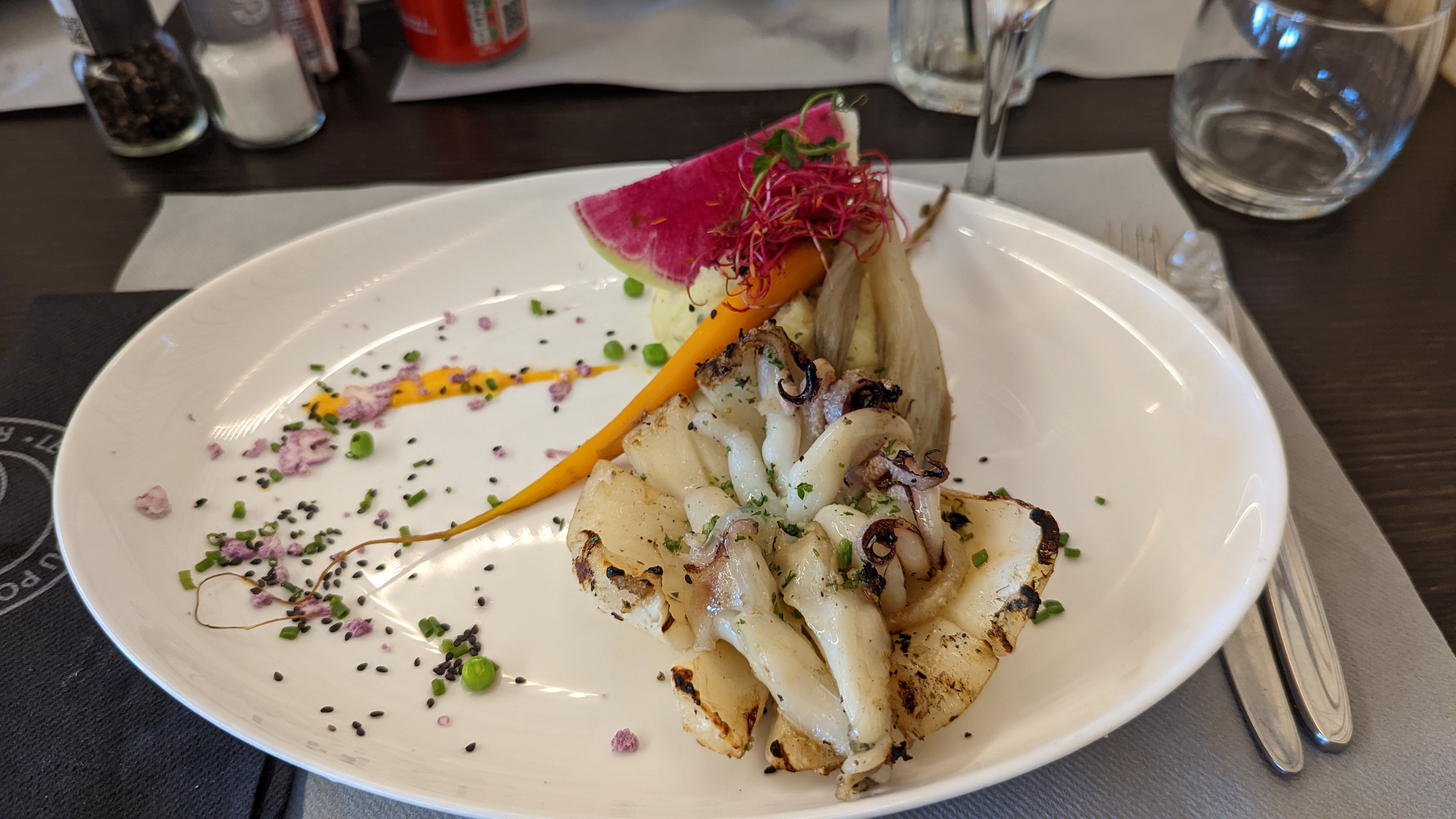 Nous avons eu le plaisir de déguster, entre autre, la seiche grillée… un régal pour les papilles avec une cuisson parfaite au barbecue, un assaisonnement divin et un accompagnement de légumes et purée parfaitement réalisés. Le service est rapide et sympathique. Nous reviendrons sans hésiter !