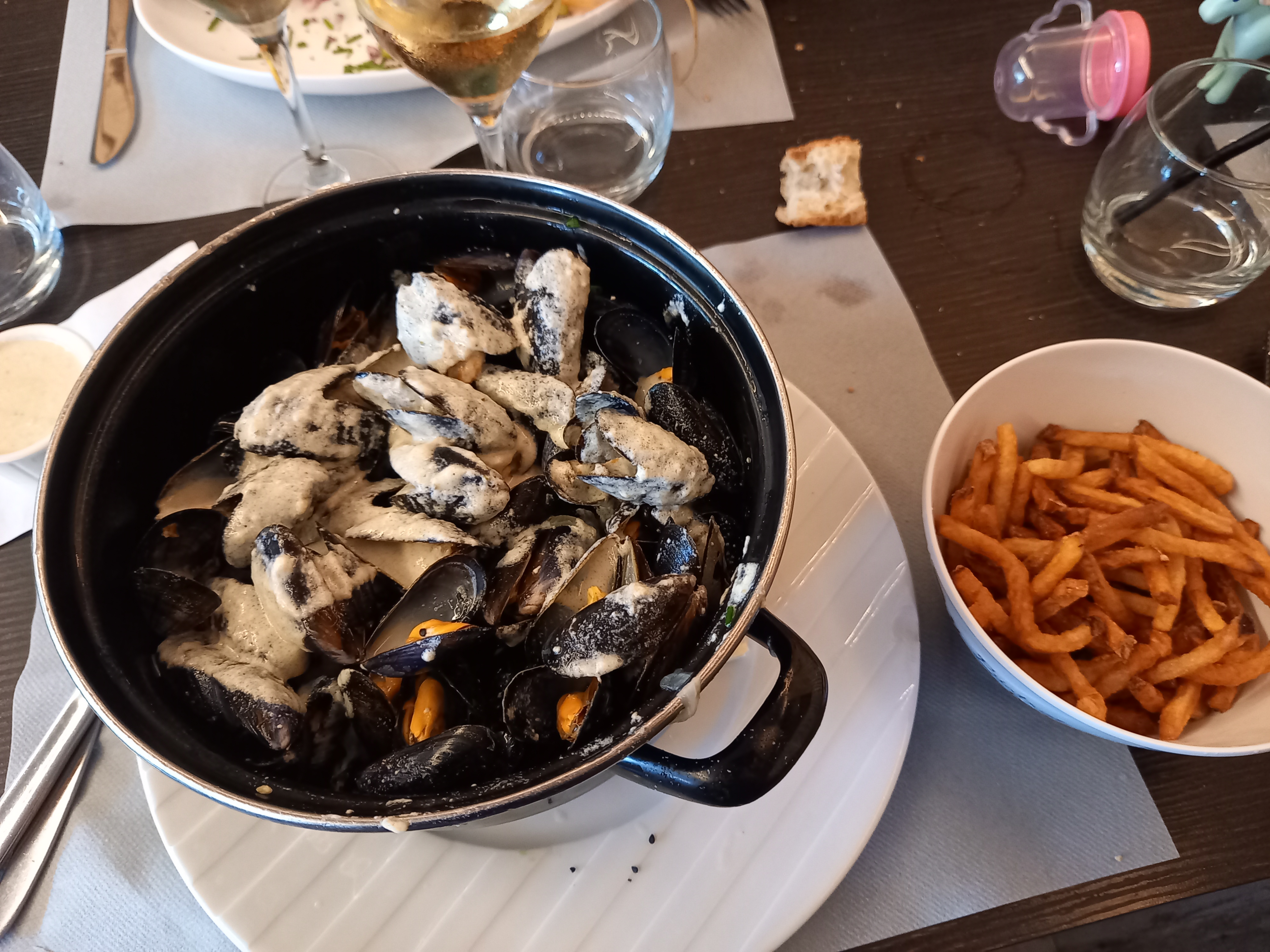 Accueil au top , serveur agréable,gamelle d'eau pour le chien , crayon pour la petite, nous avons bien mangé une bonne portion de moules et pour une fois une sauce roquefort maison et c'est appréciable. Juste les frites pas super bien cuites et portion un peu légère,mais bon nous avons passé un bon moment .