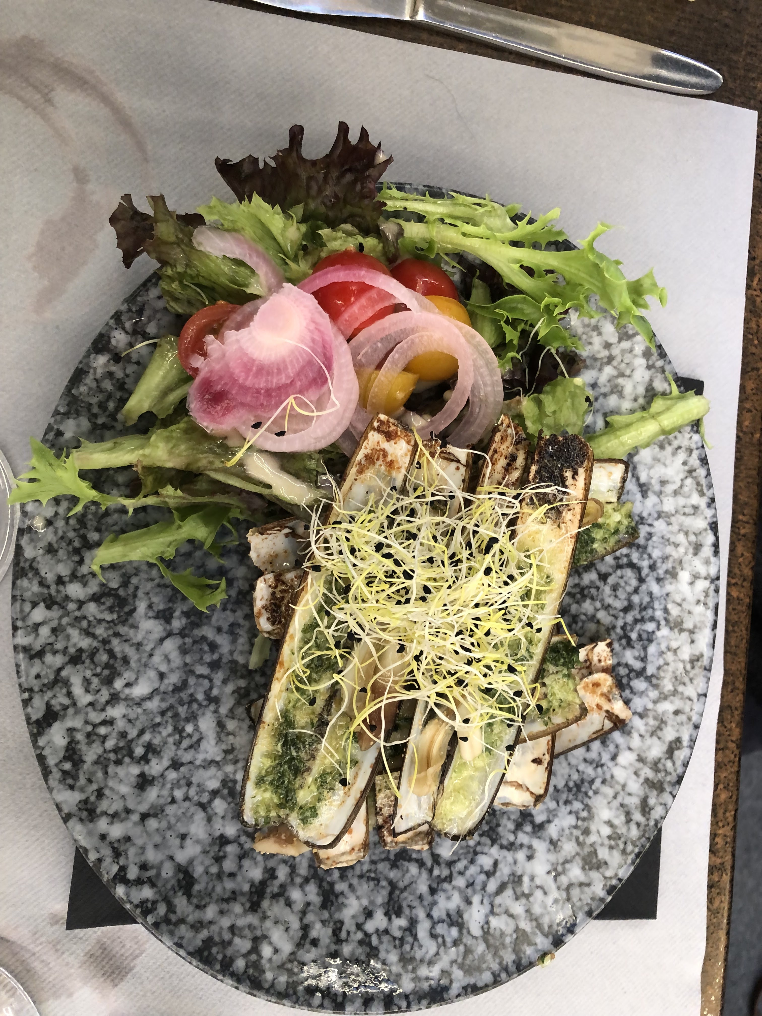 Service efficace. Plats hyper bons er bien présentés. Bon rapport qualité prix. Je recommande. En photo assiette de couteaux et poêlée de saint Jacques au bolets. Un régal!!