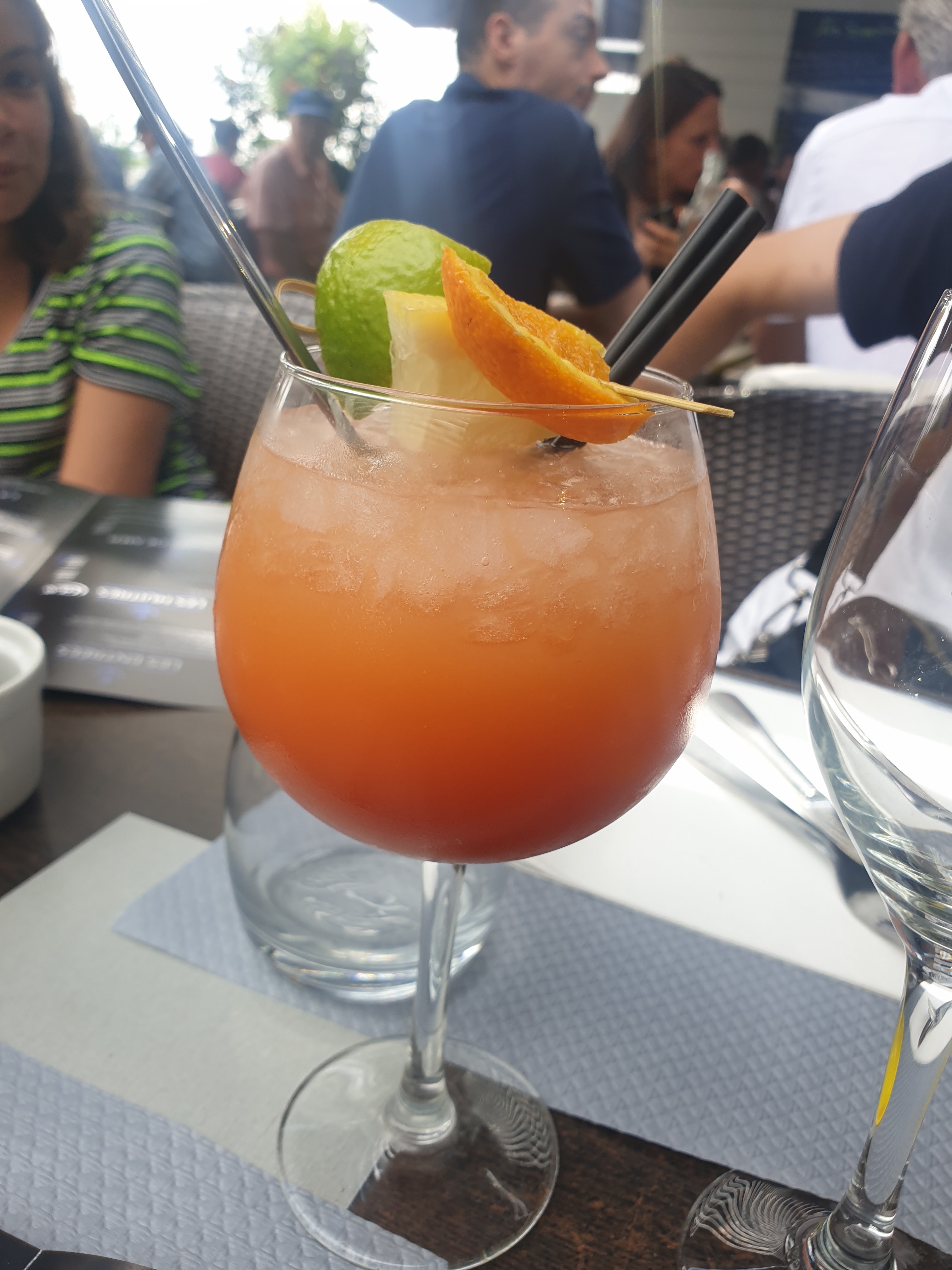 belle terrasse serveur très agréable menu 29 € entrée saumon fumé (extra ) plat gambas et ses légumes succulent dessert je recommande très fortement cet établissement