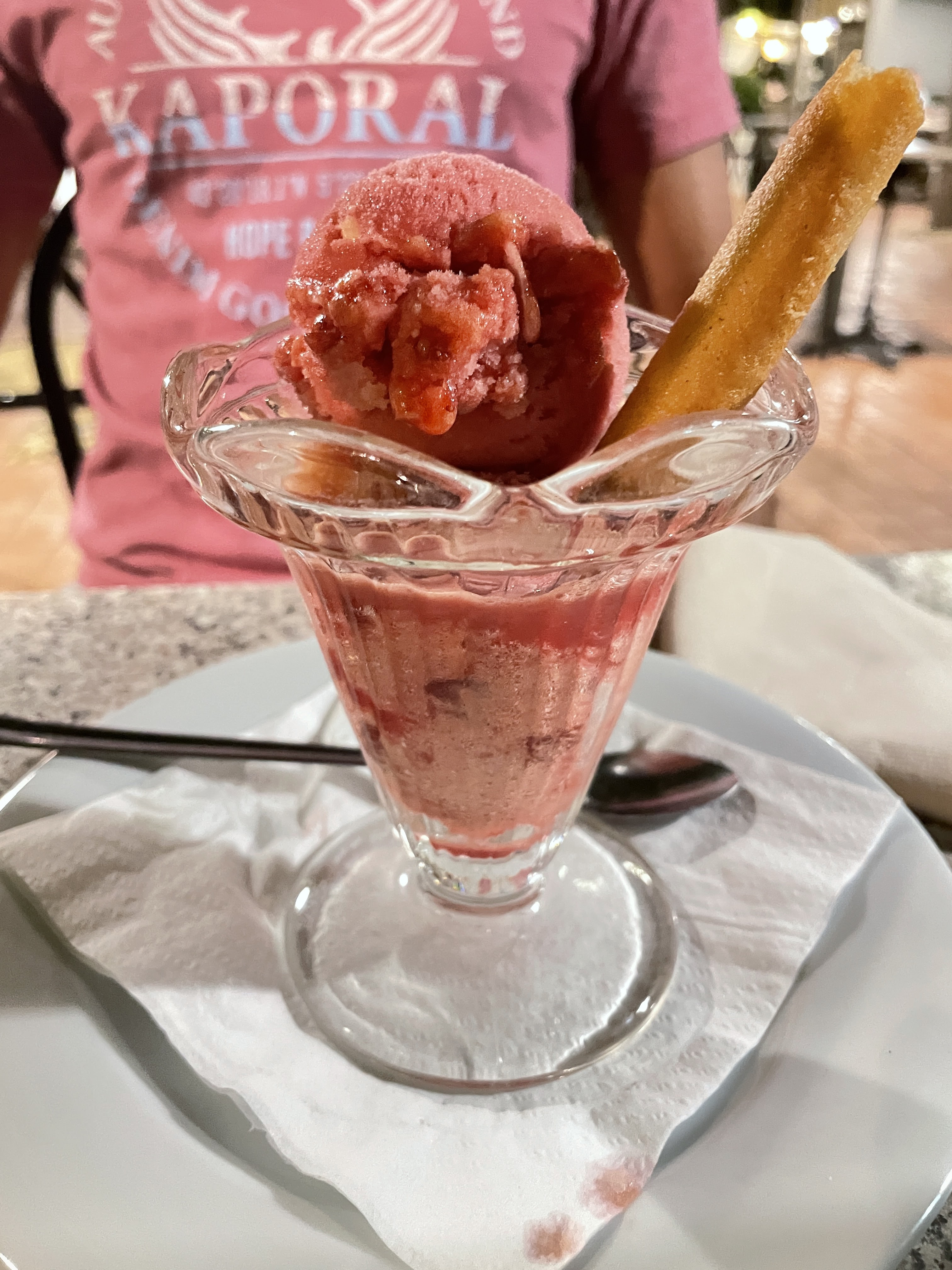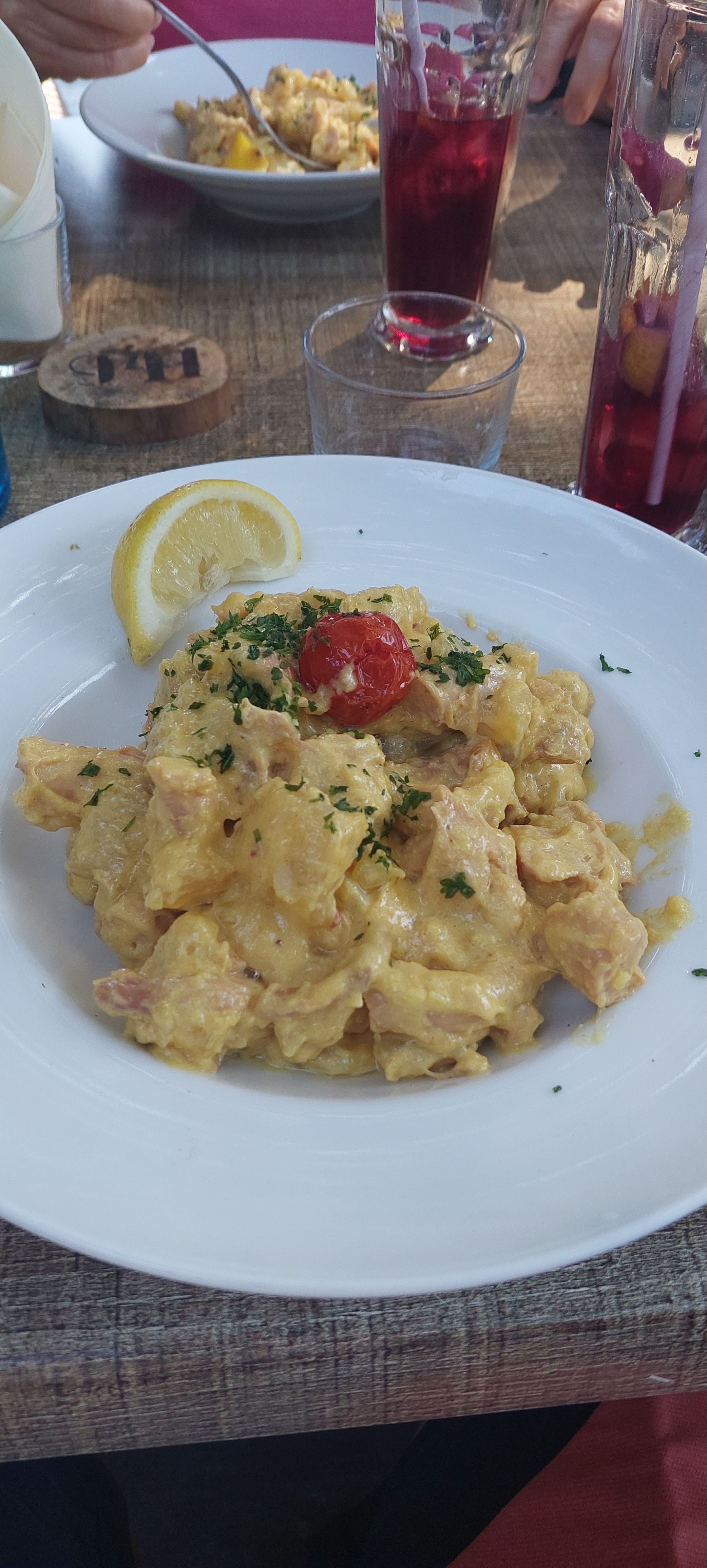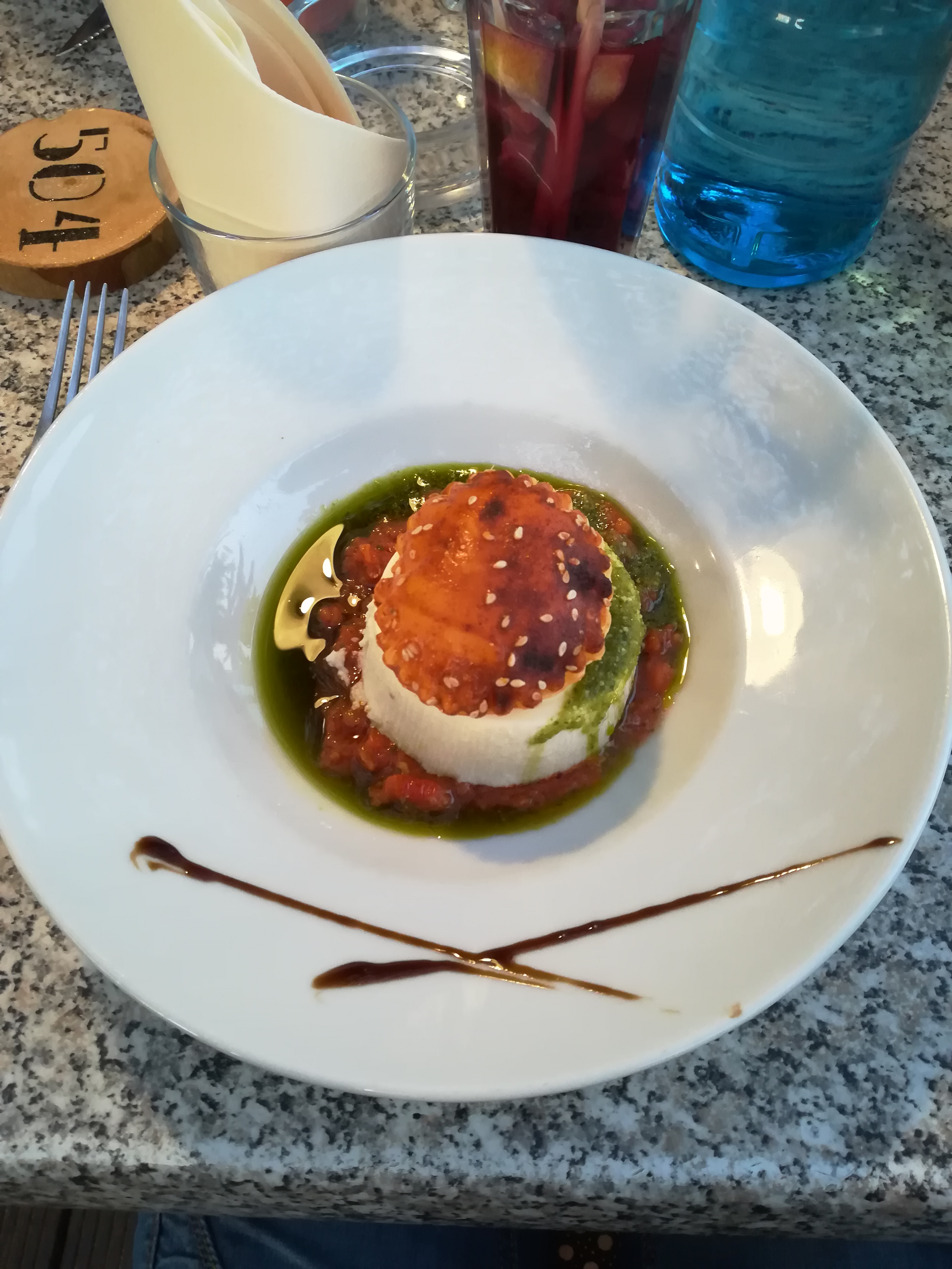 Panacotta au fromage de 🐐.....il fallait le trouver ??!!! Dommage. Plats moyens et terrasse ombragée en plein courant d air alors qu il y avait celle au bord du port bien mieux ..... Pas top du tout ! On a connu bien mieux chez eux !! Déçu 😞 😔